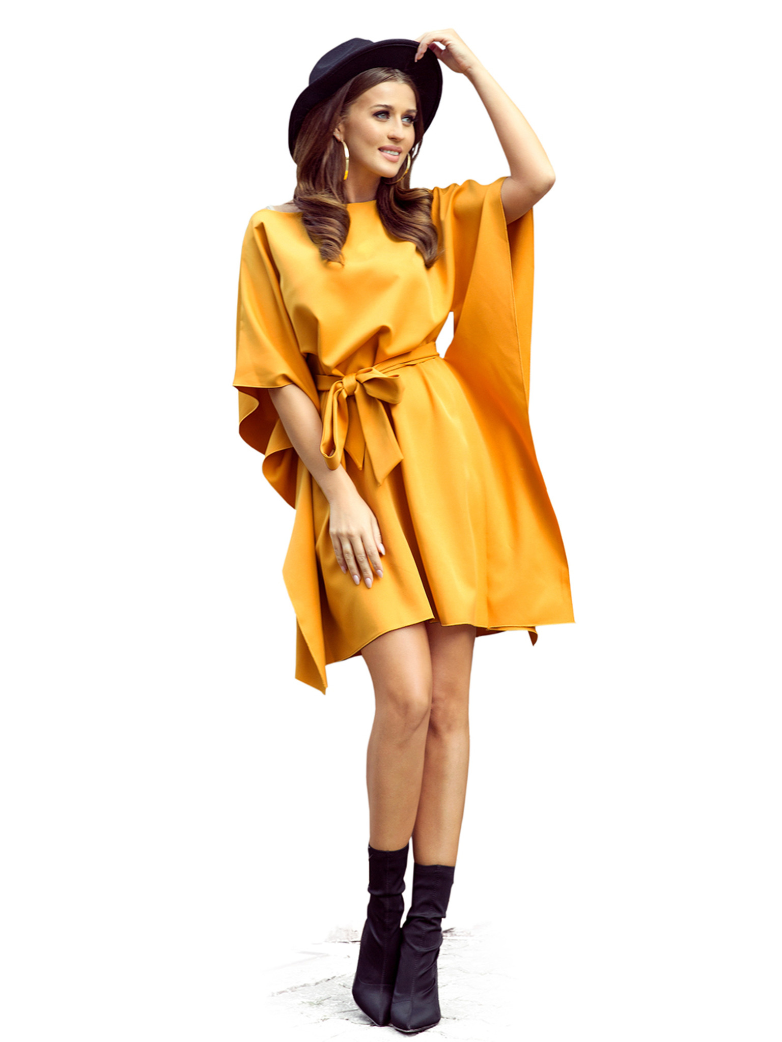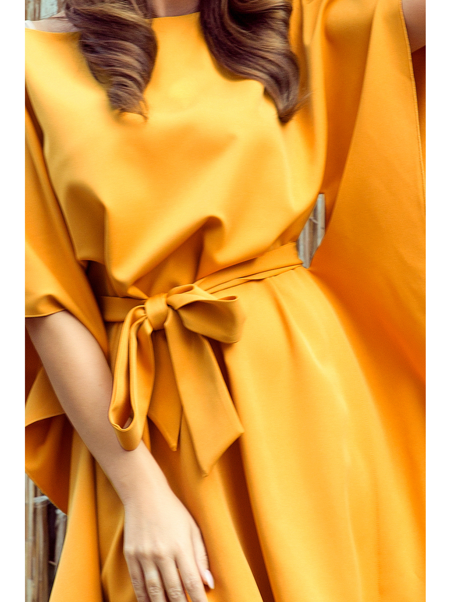 Дамски мини рокли с воланки и дълги ръкави - праскова