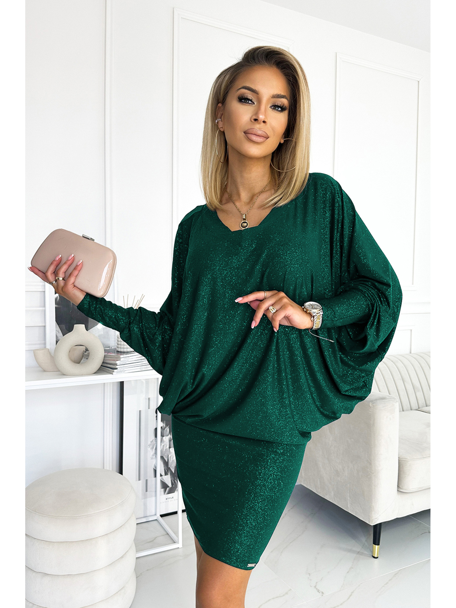 SOFIA Butterfly рокля с колан в талията - тъмно синьо със светещи елементи