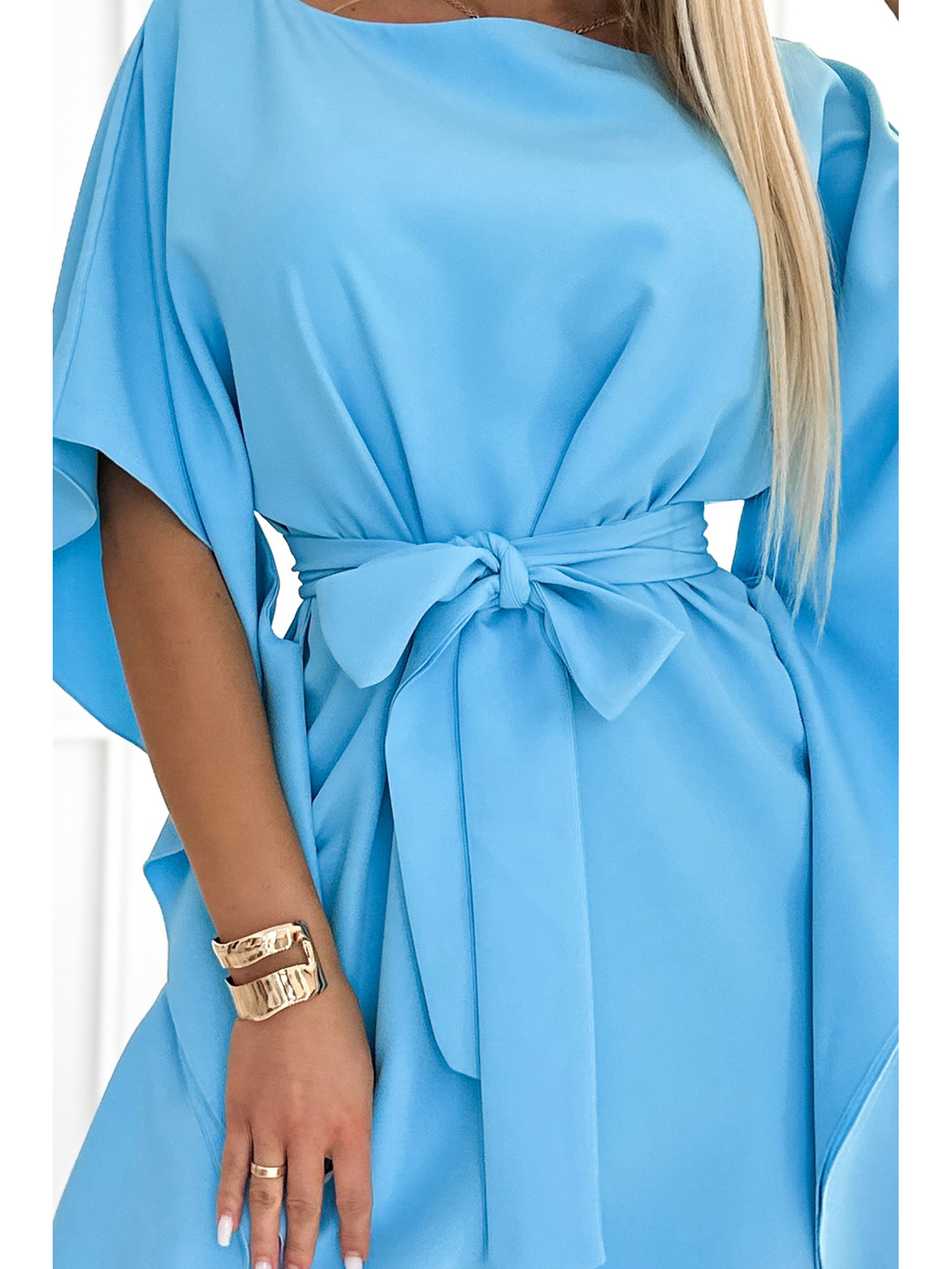 NINA Елегантни рокли с кръстосан деколте, ръкав и колан - кралско синьо