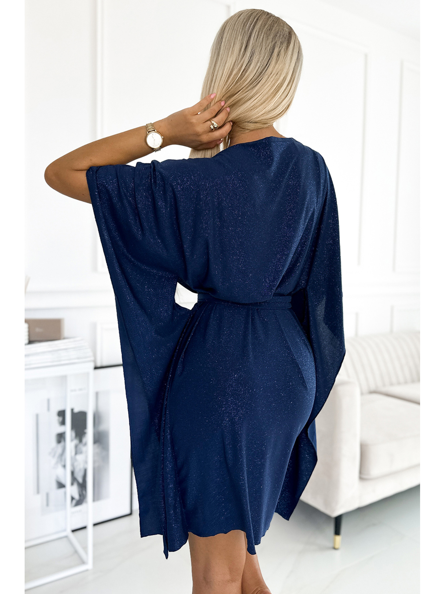 Рокля с дантелени ръкави - тъмно синя Numoco MARGARET