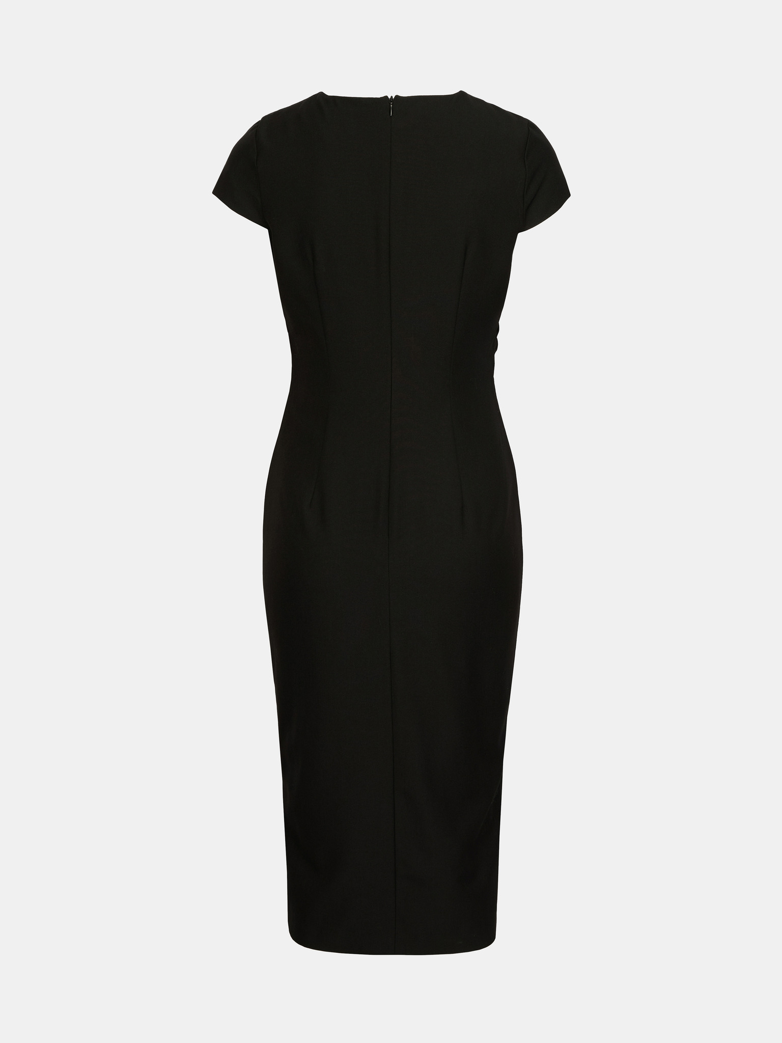 Елегантни миди рокля с прехвърлящо се деколте и тюлени ръкави - черна