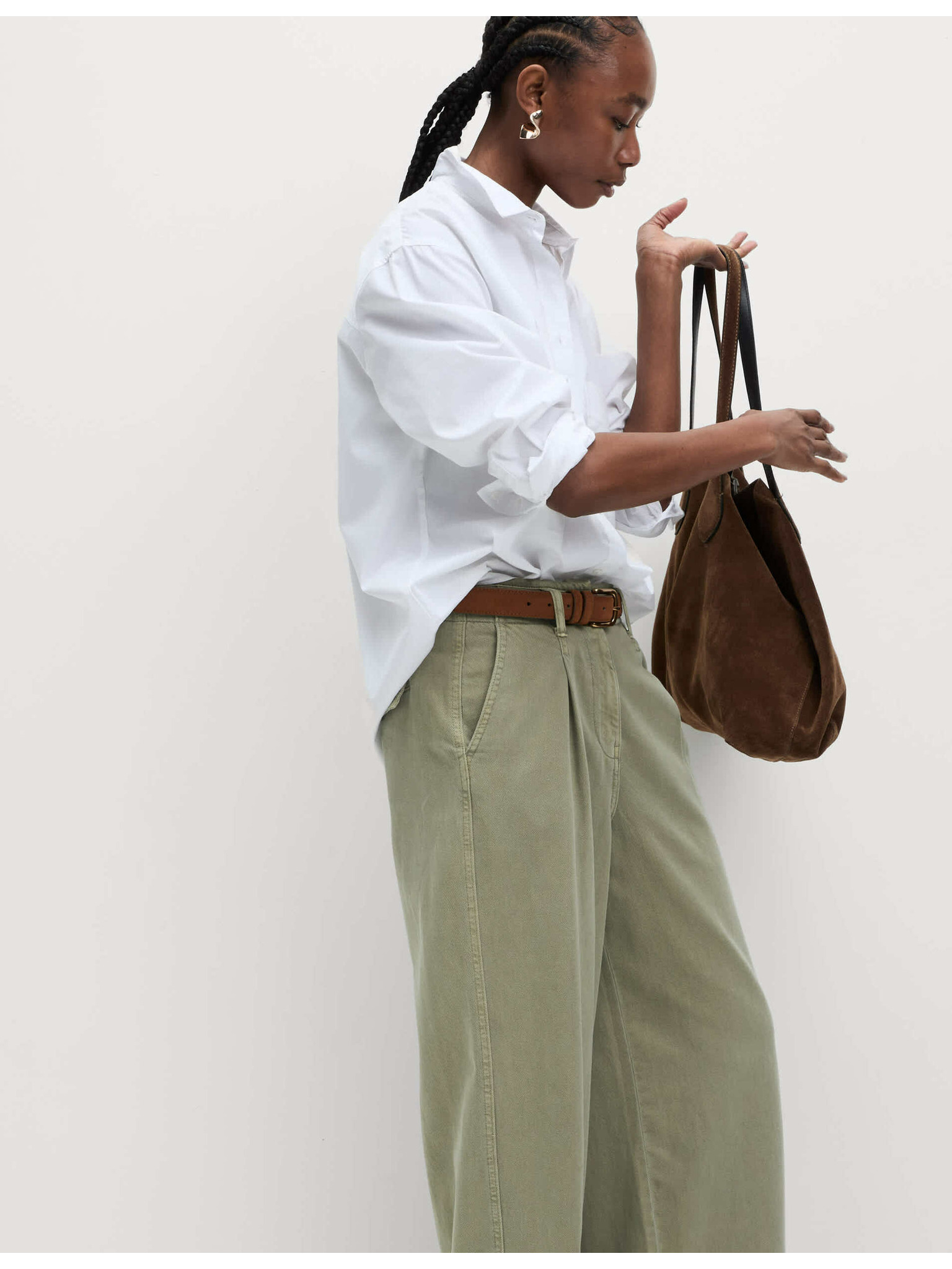 Palazzo панталони с висок процент памук Marks & Spencer в кафяво