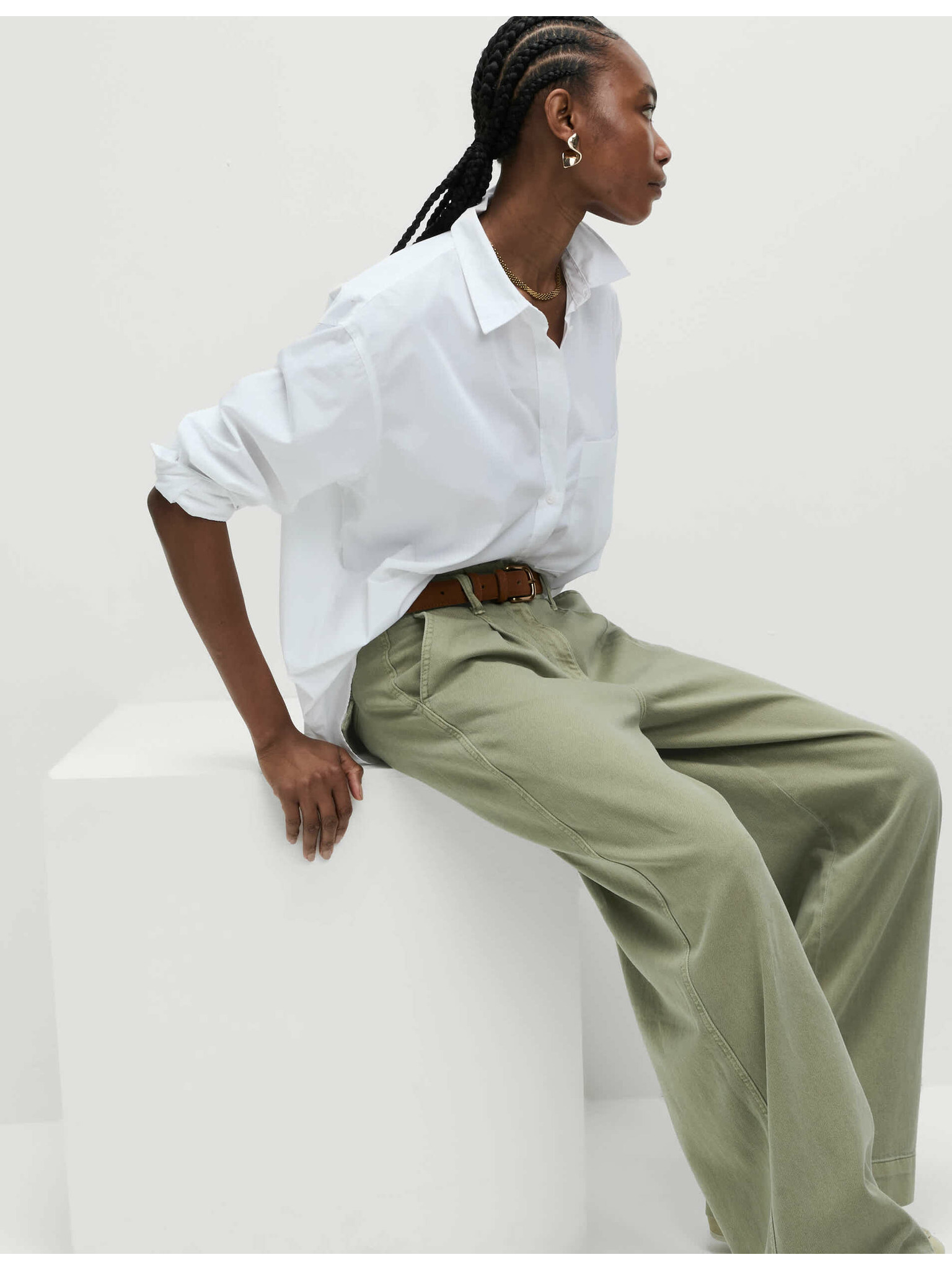 Palazzo панталони с висок процент памук Marks & Spencer в бяло