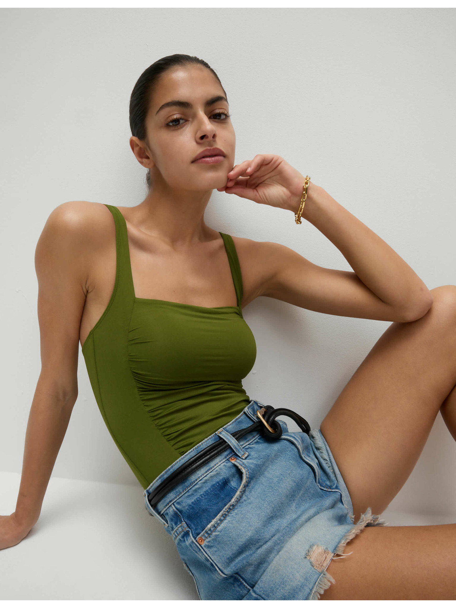 Текстурирани бански с овално деколте Marks & Spencer черен
