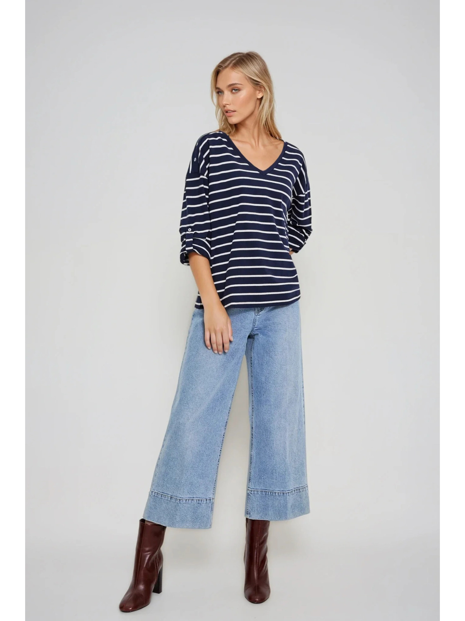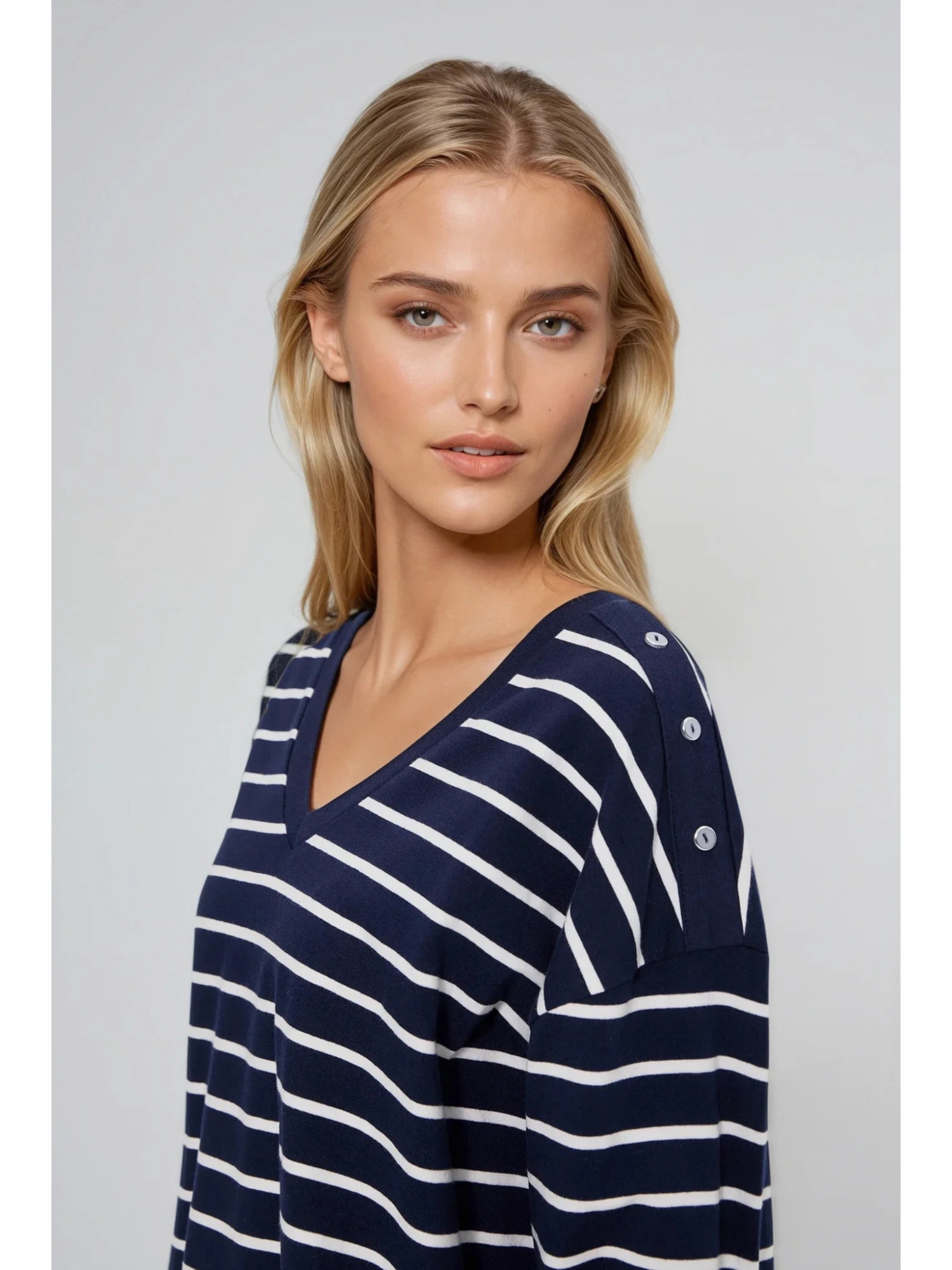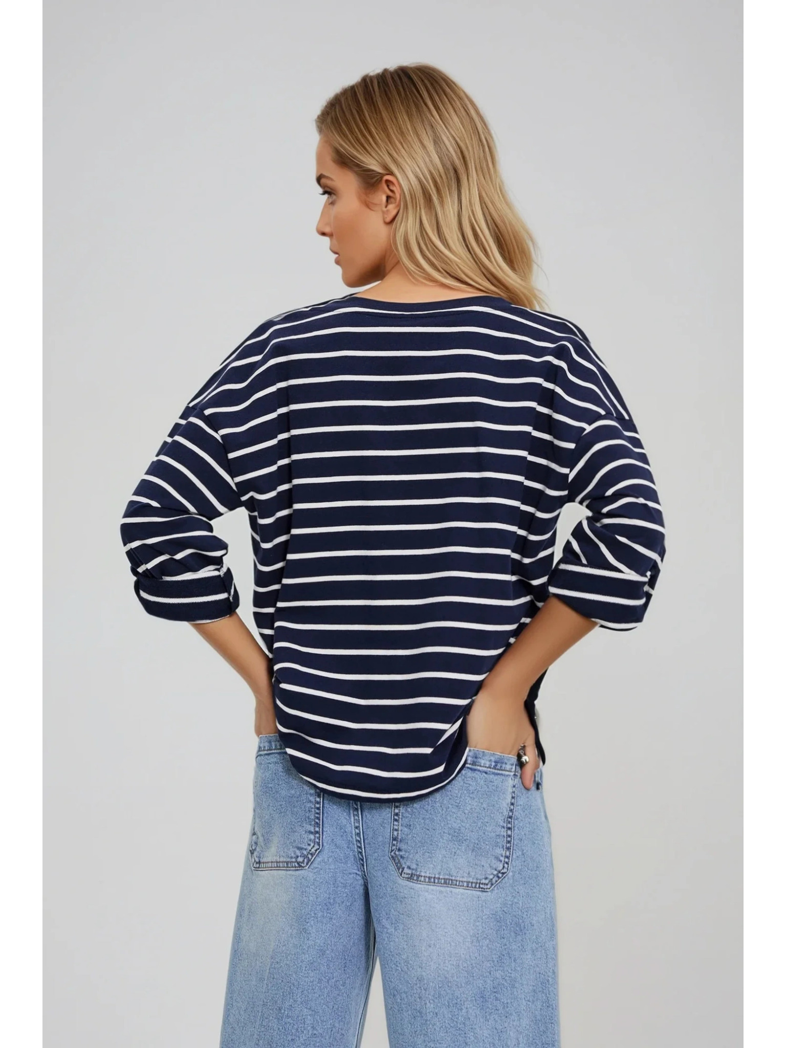 Бяло и синьо дамско раирано потниче Moodo