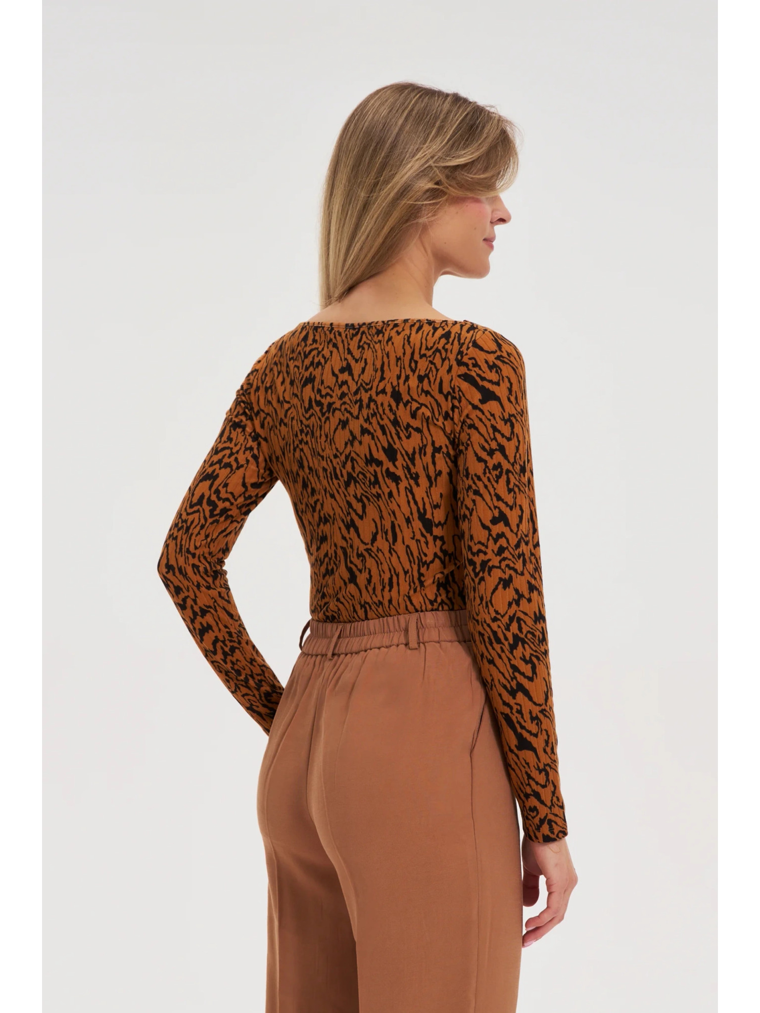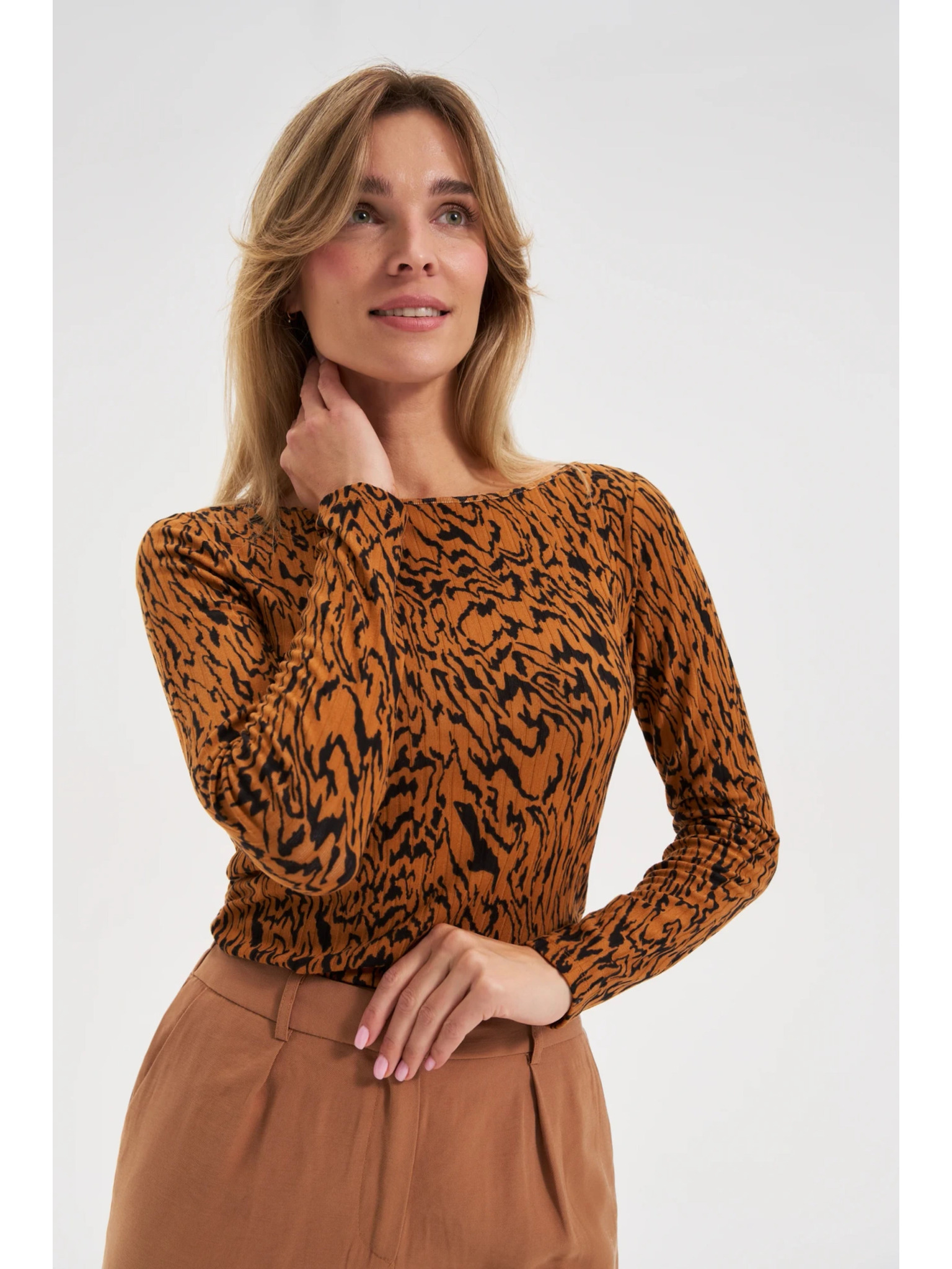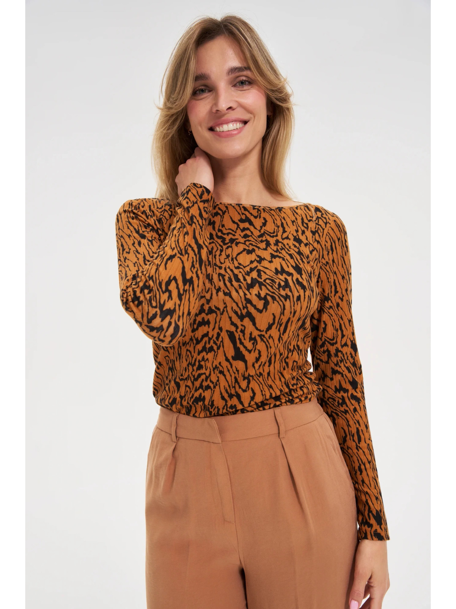 Бежова дамска тениска на райе с дълъг ръкав ORSAY