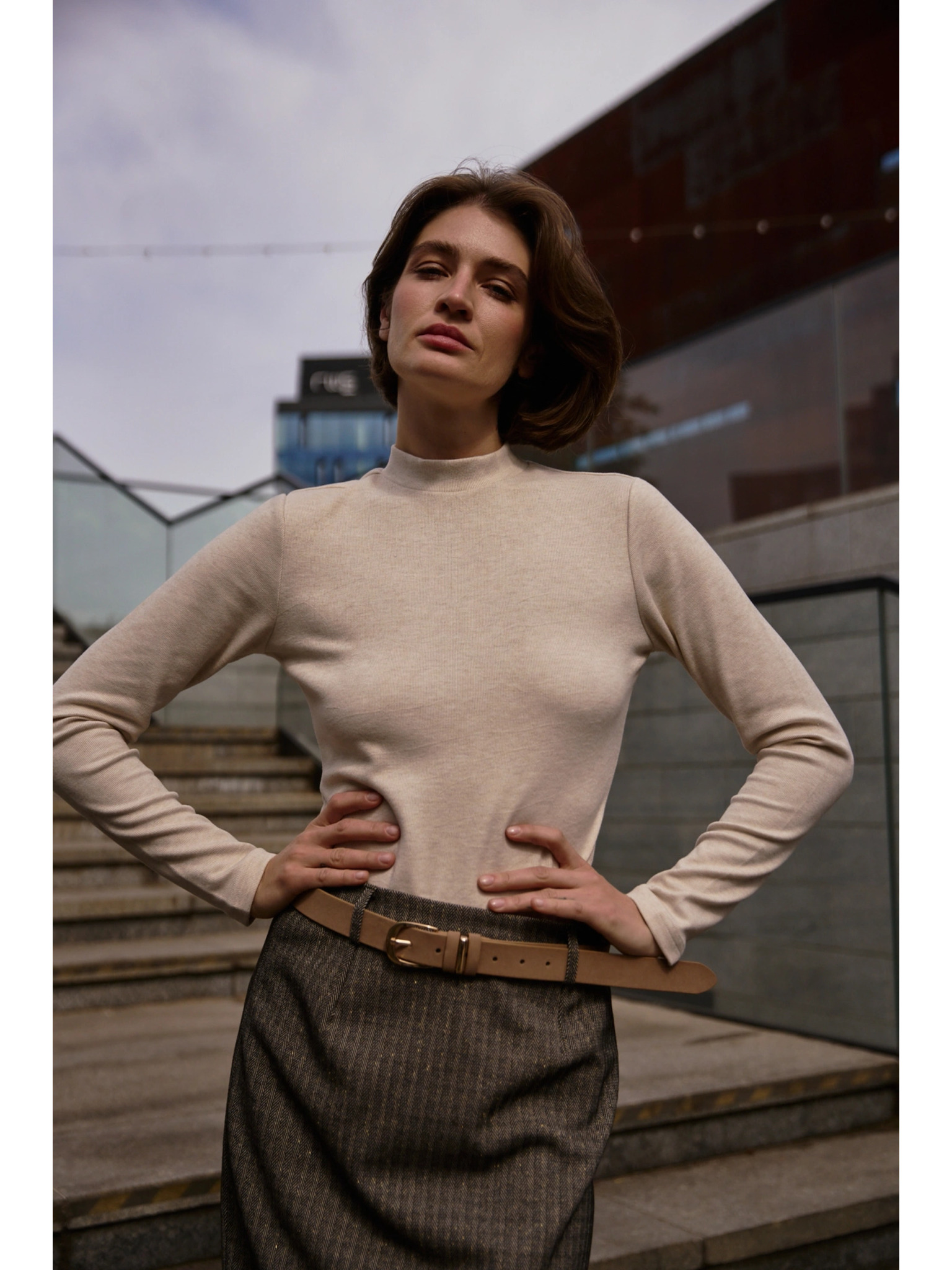 Бежова дамска тениска на райе с дълъг ръкав ORSAY