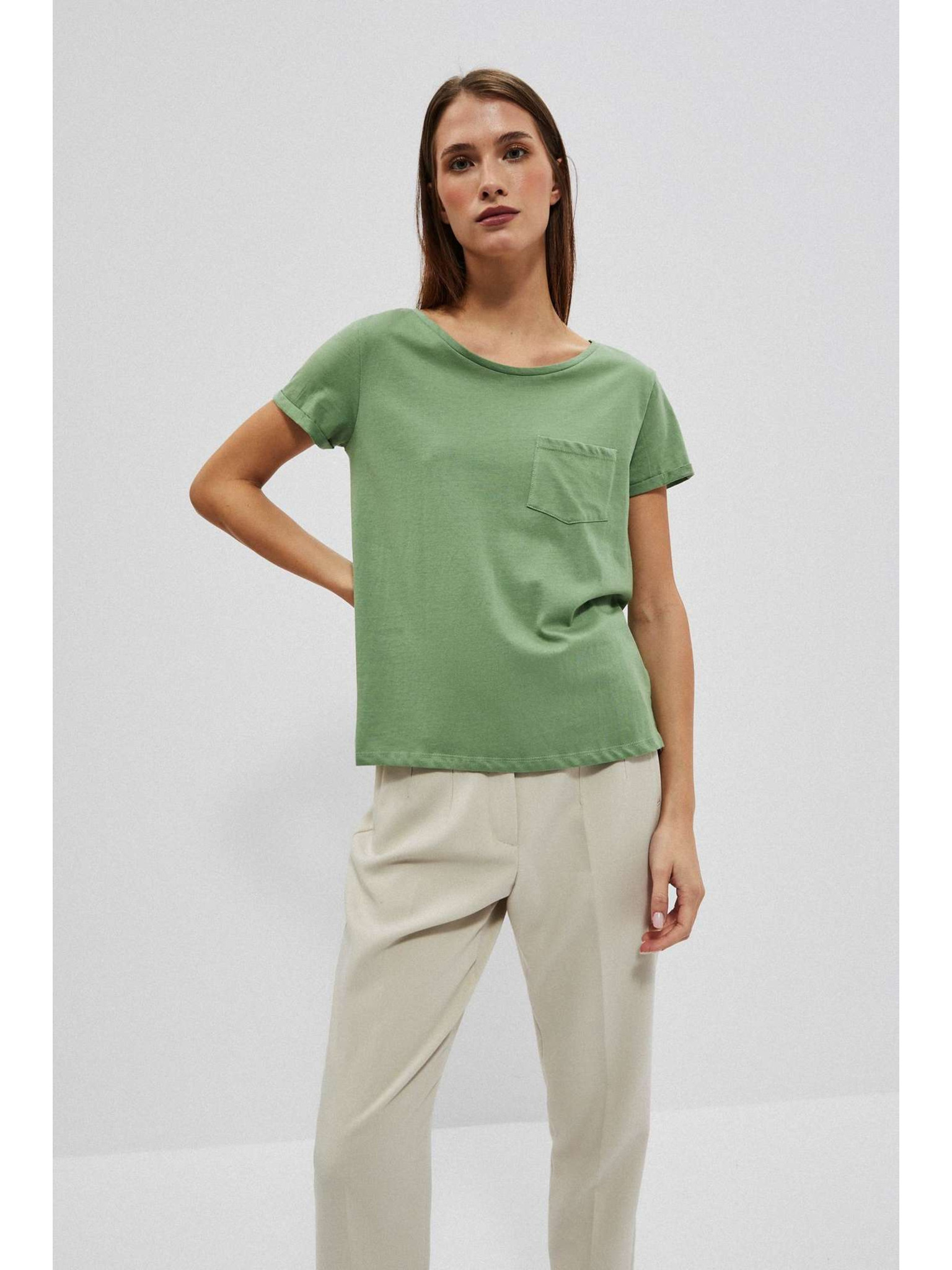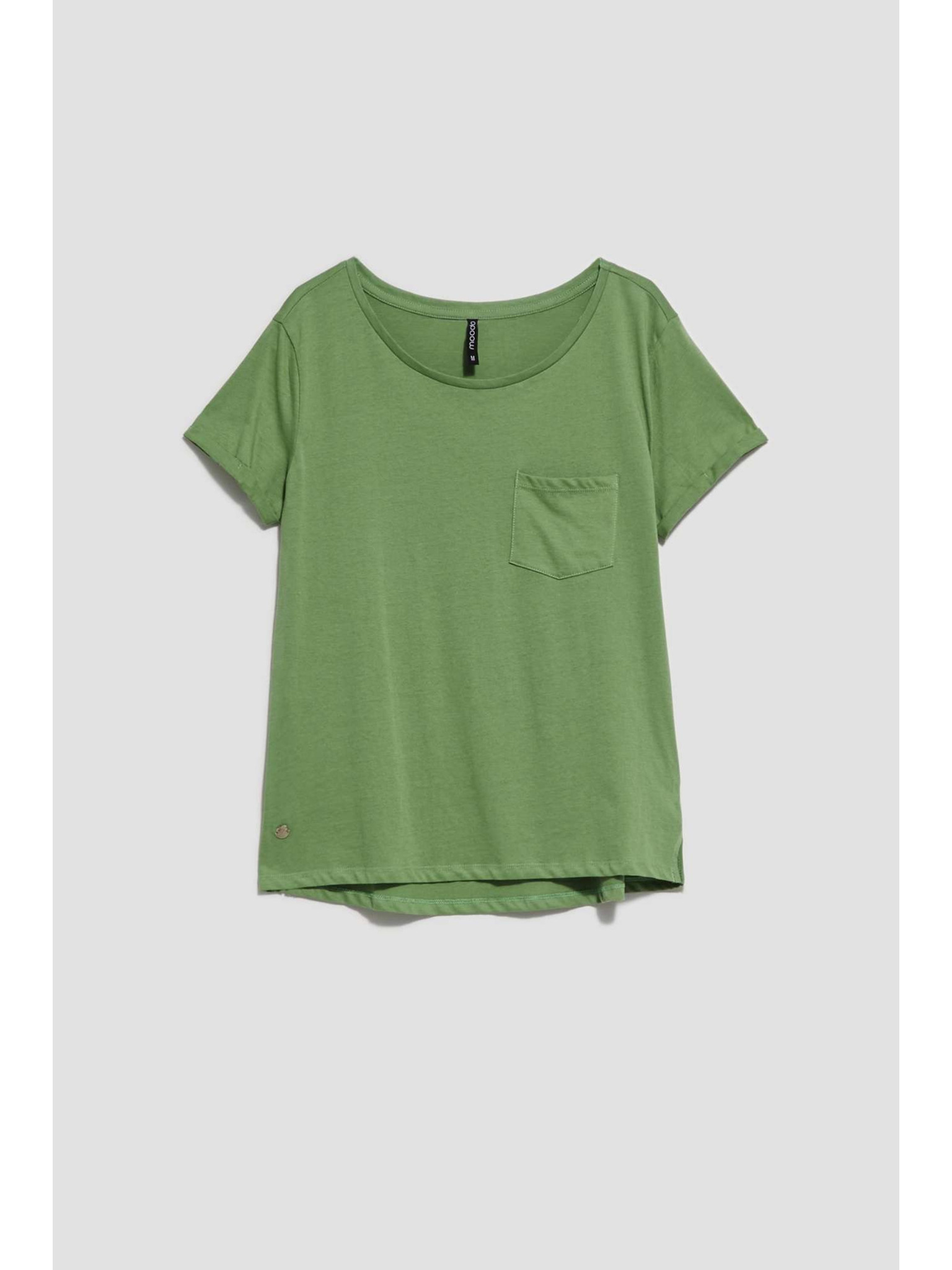 Памучна тениска с кръгло деколте и джобче в маслинено Moodo