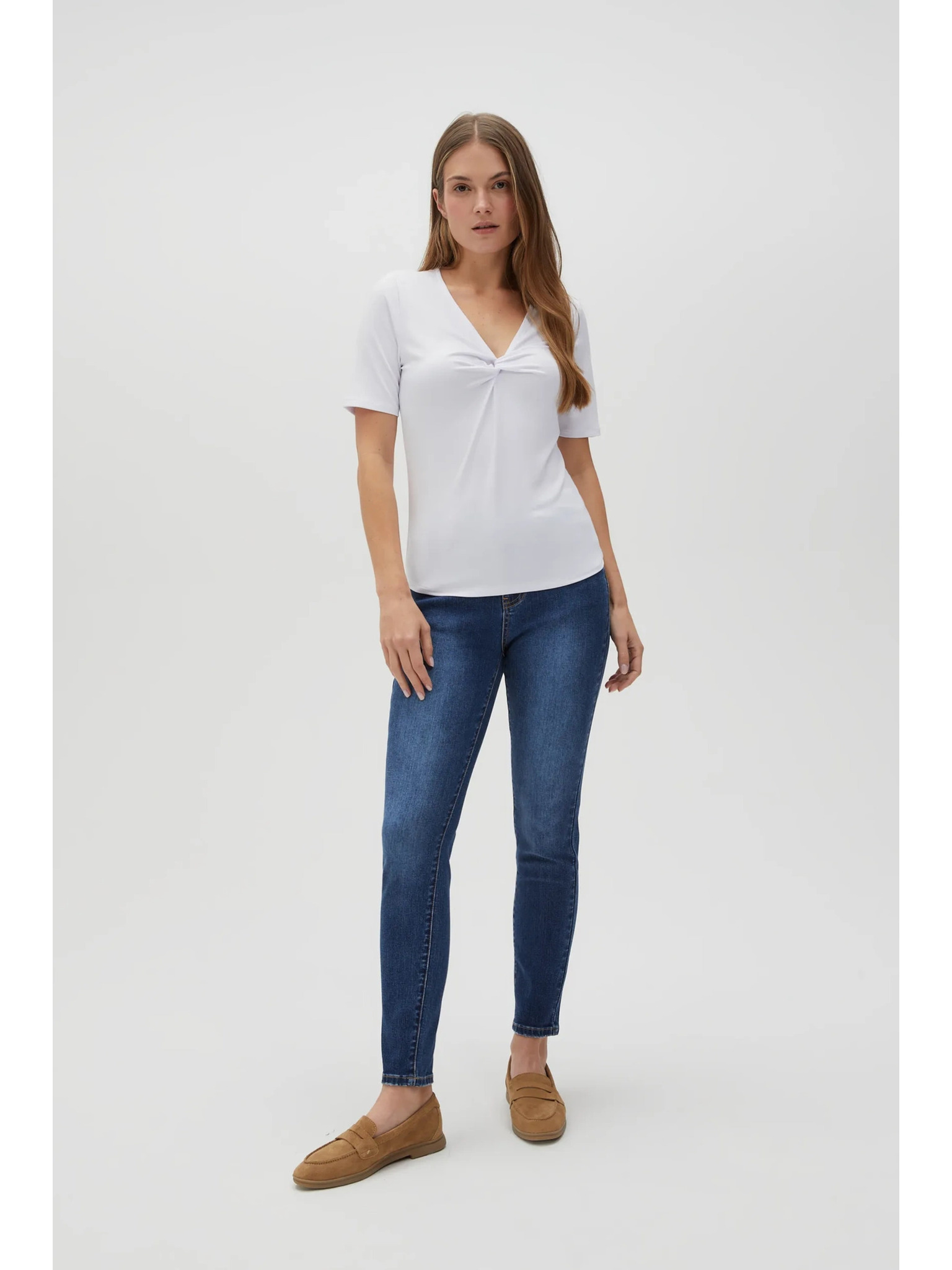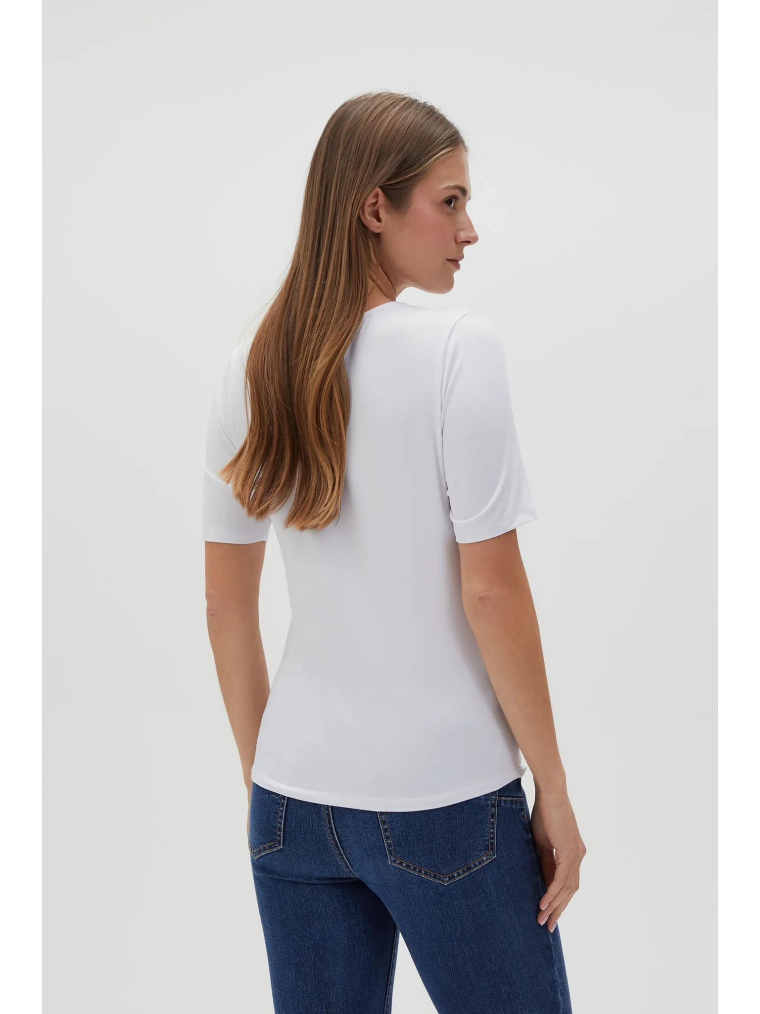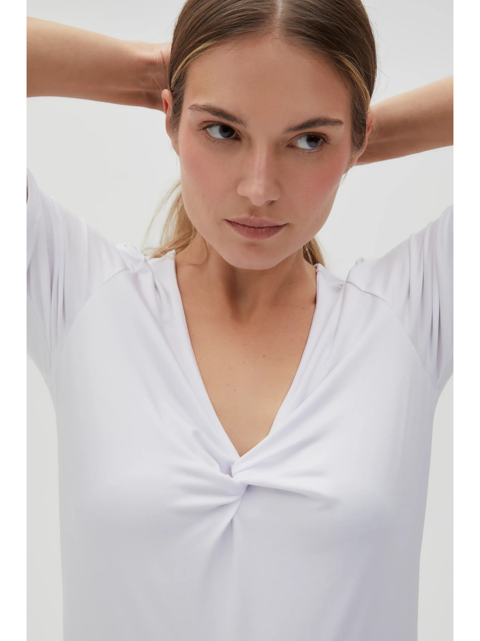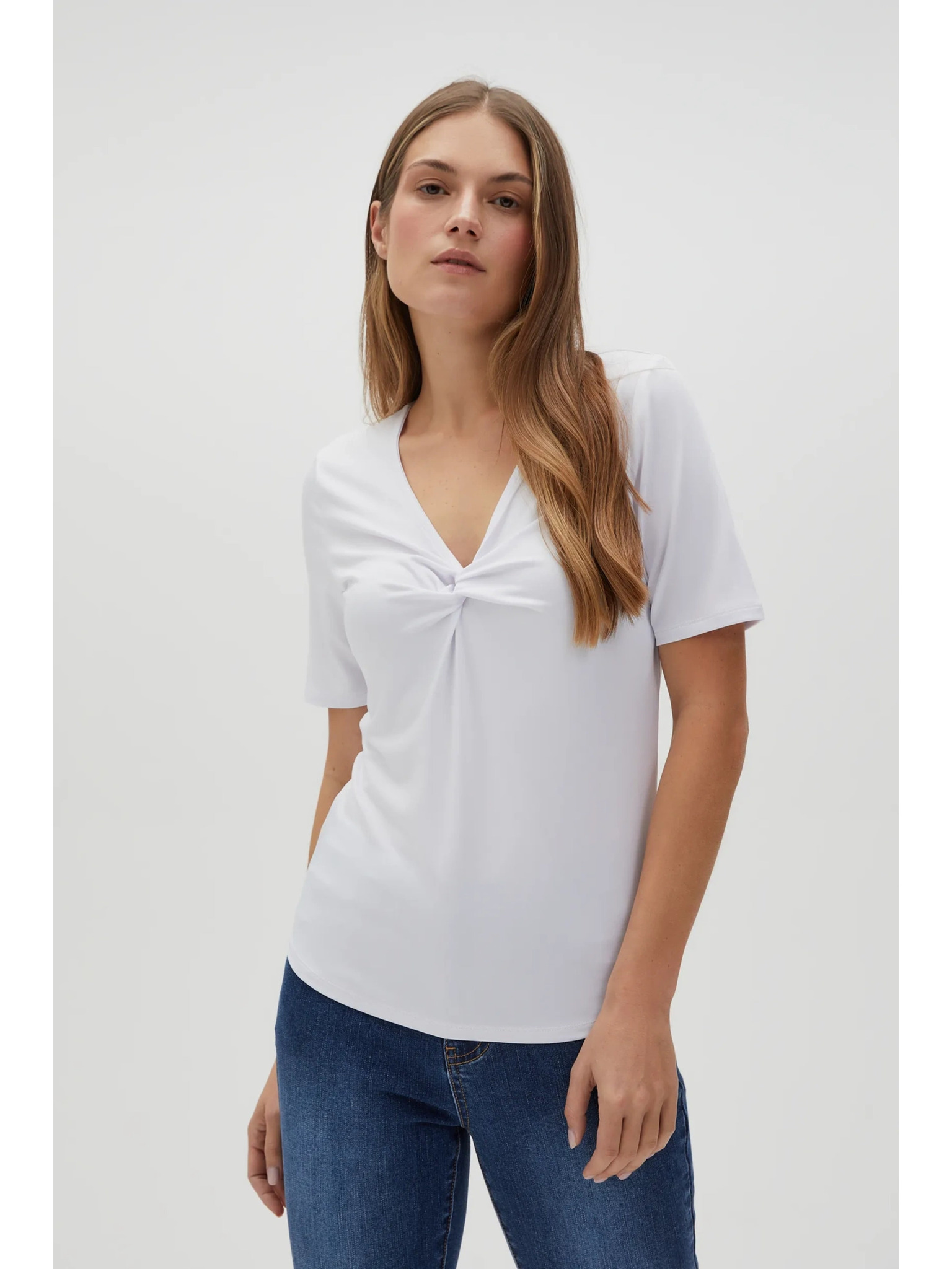 Бяла блуза с декоративно деколте Moodo