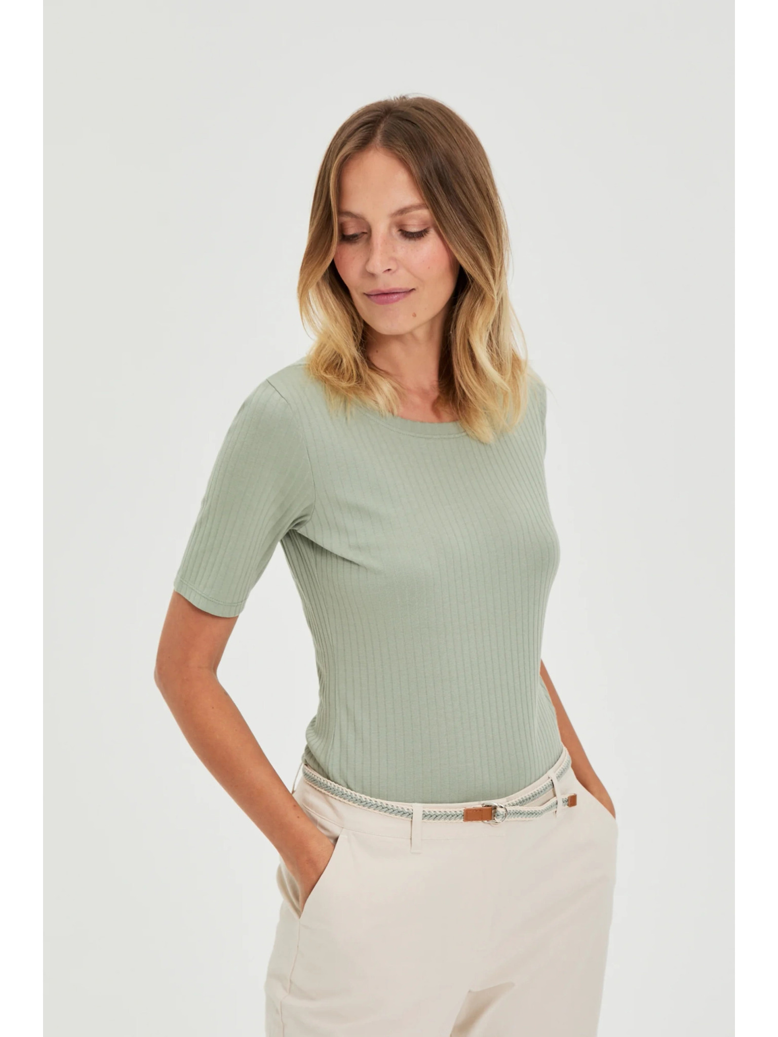 Оливена блуза от рипсено трико Moodo