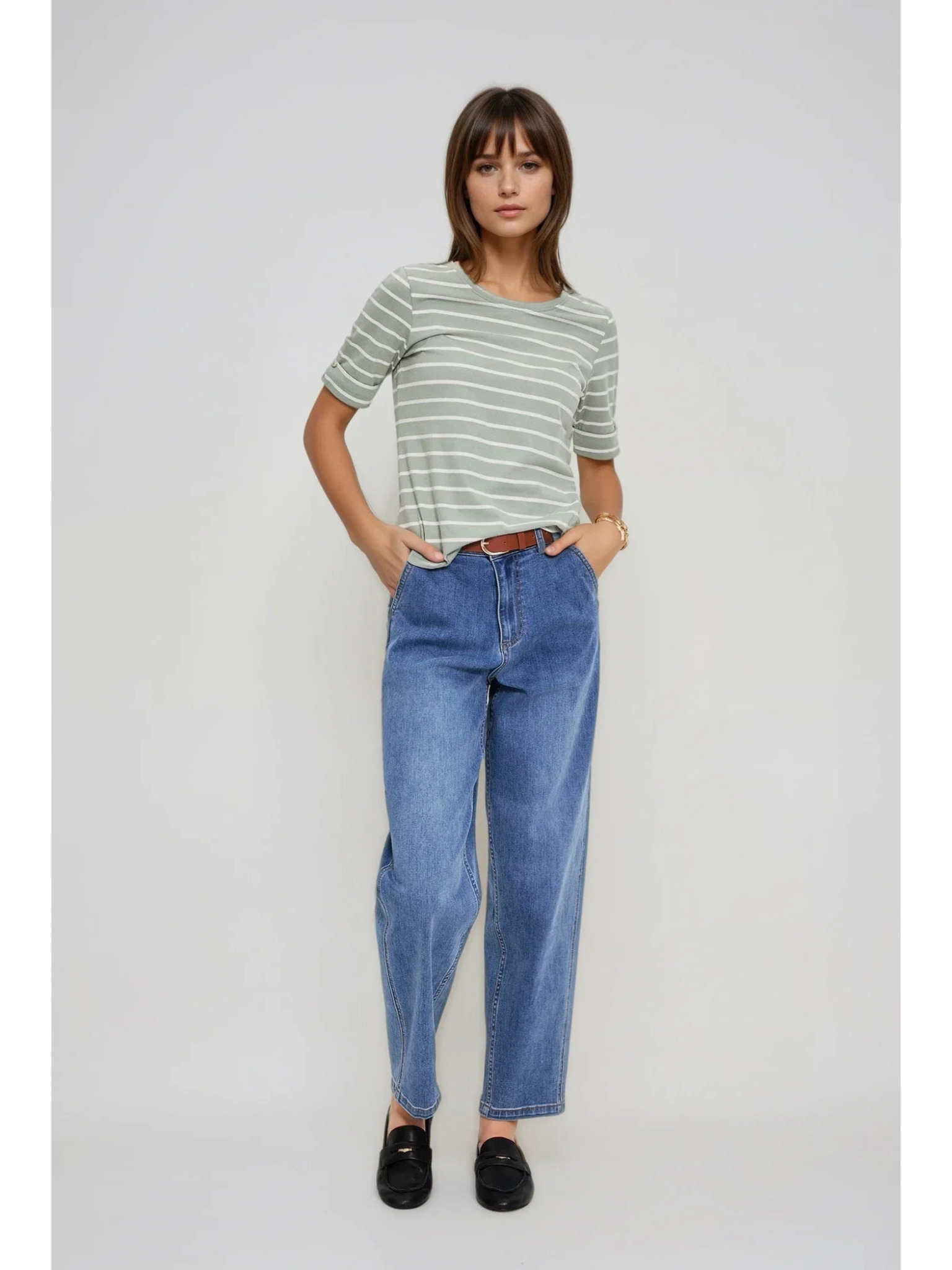 Маслинена дамска тениска Moodo