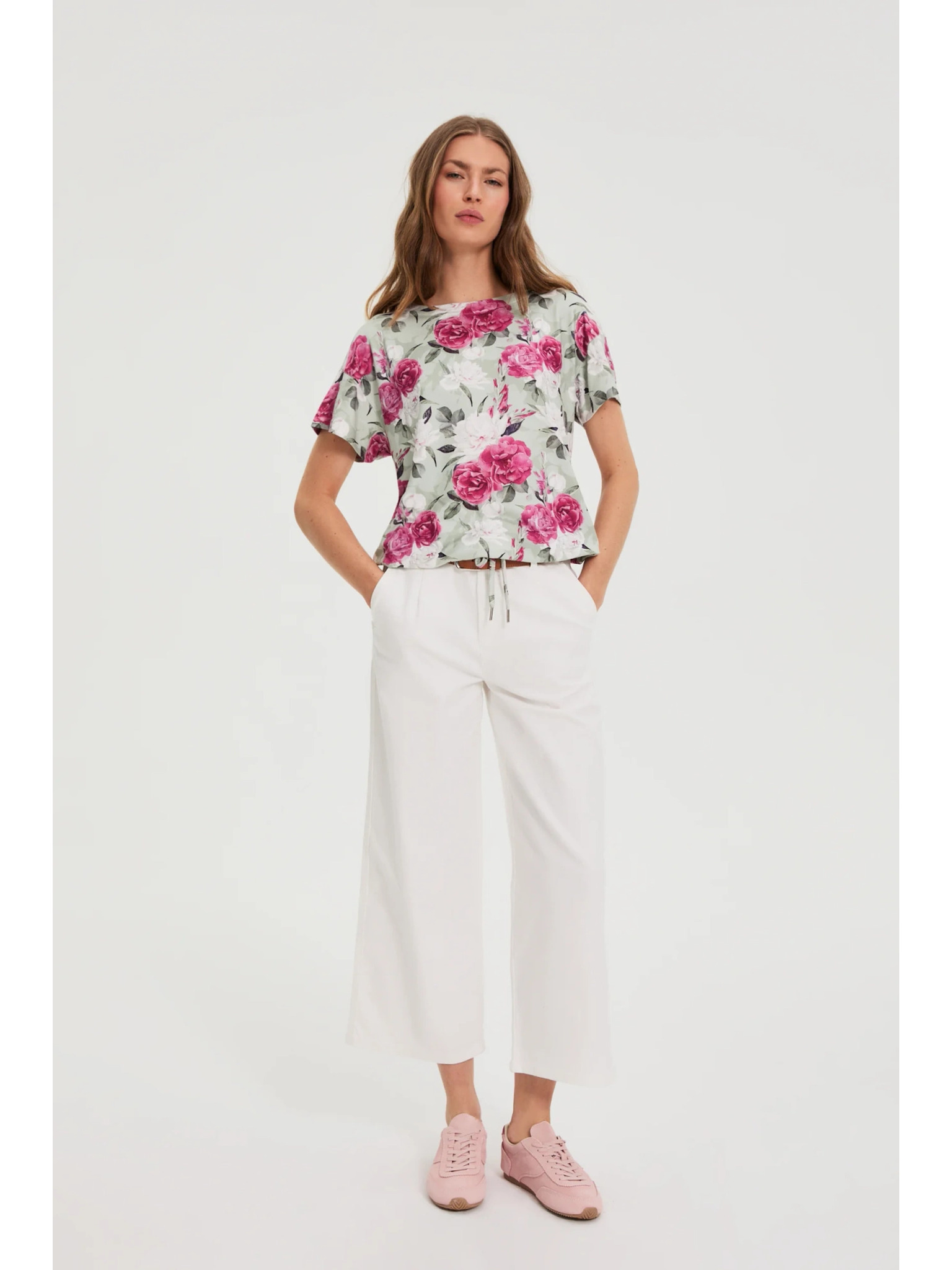 Маслинена флорална блуза с връзка Moodo