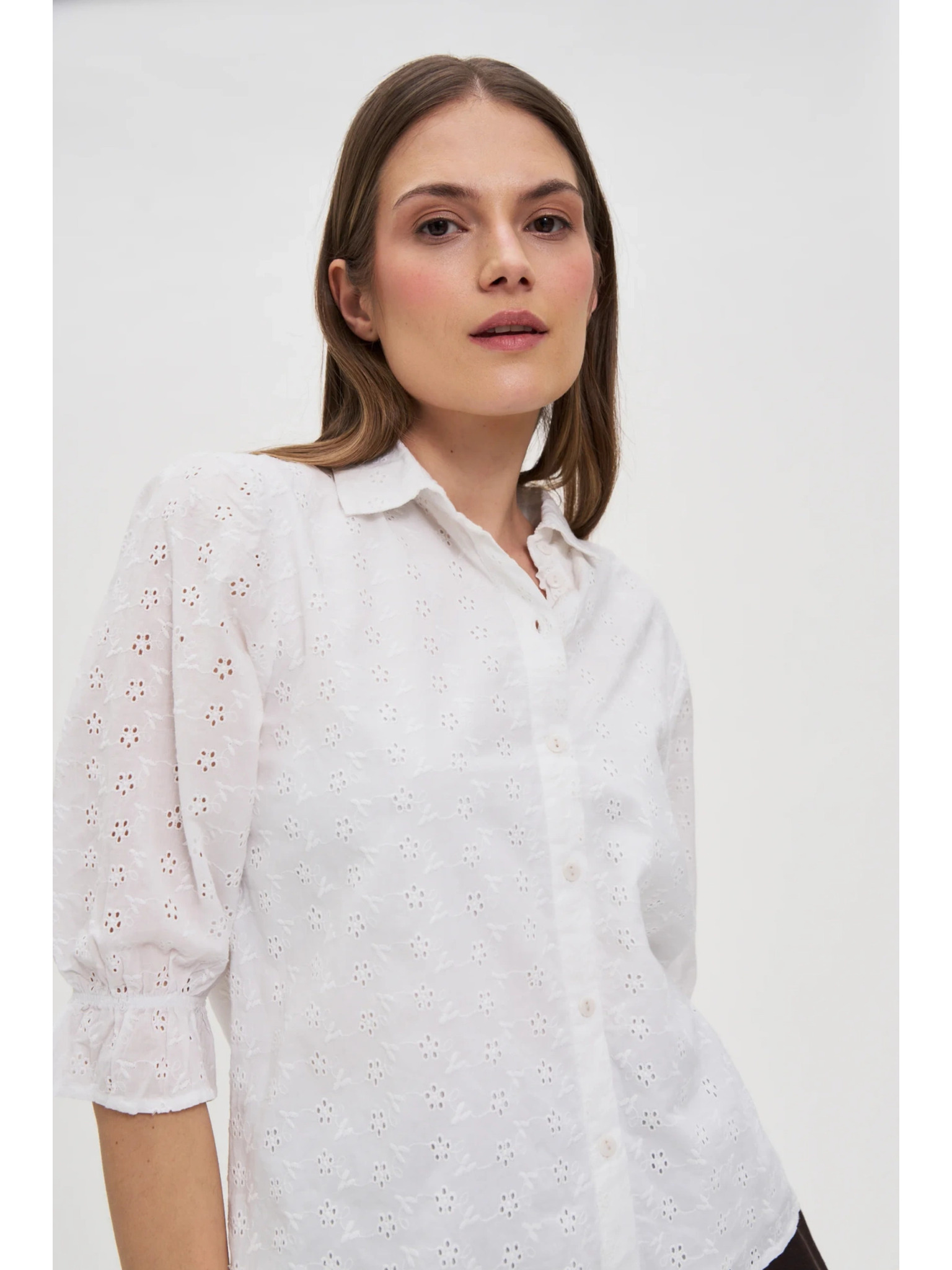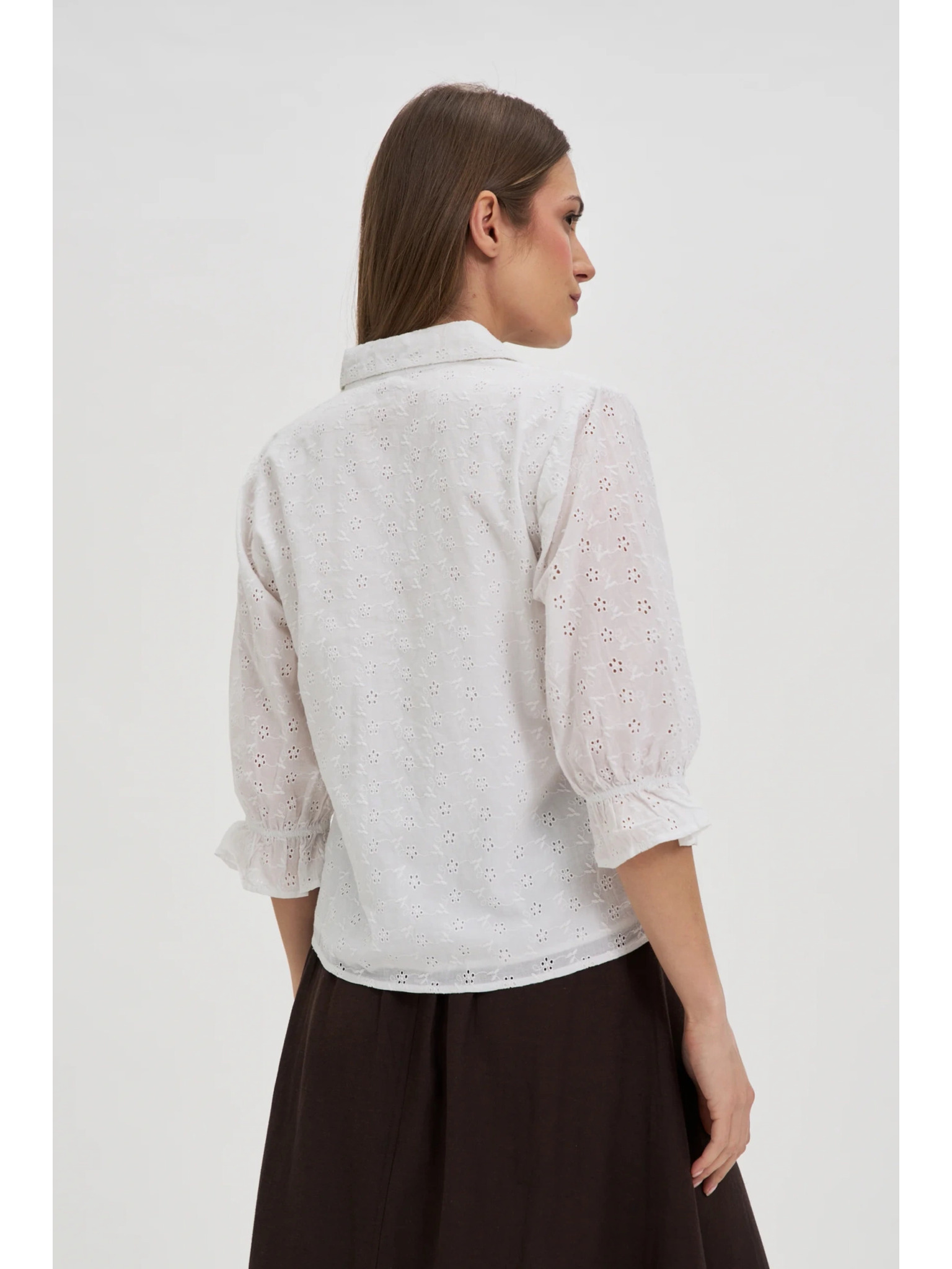 Бяла блуза с подвити ръкави Moodo