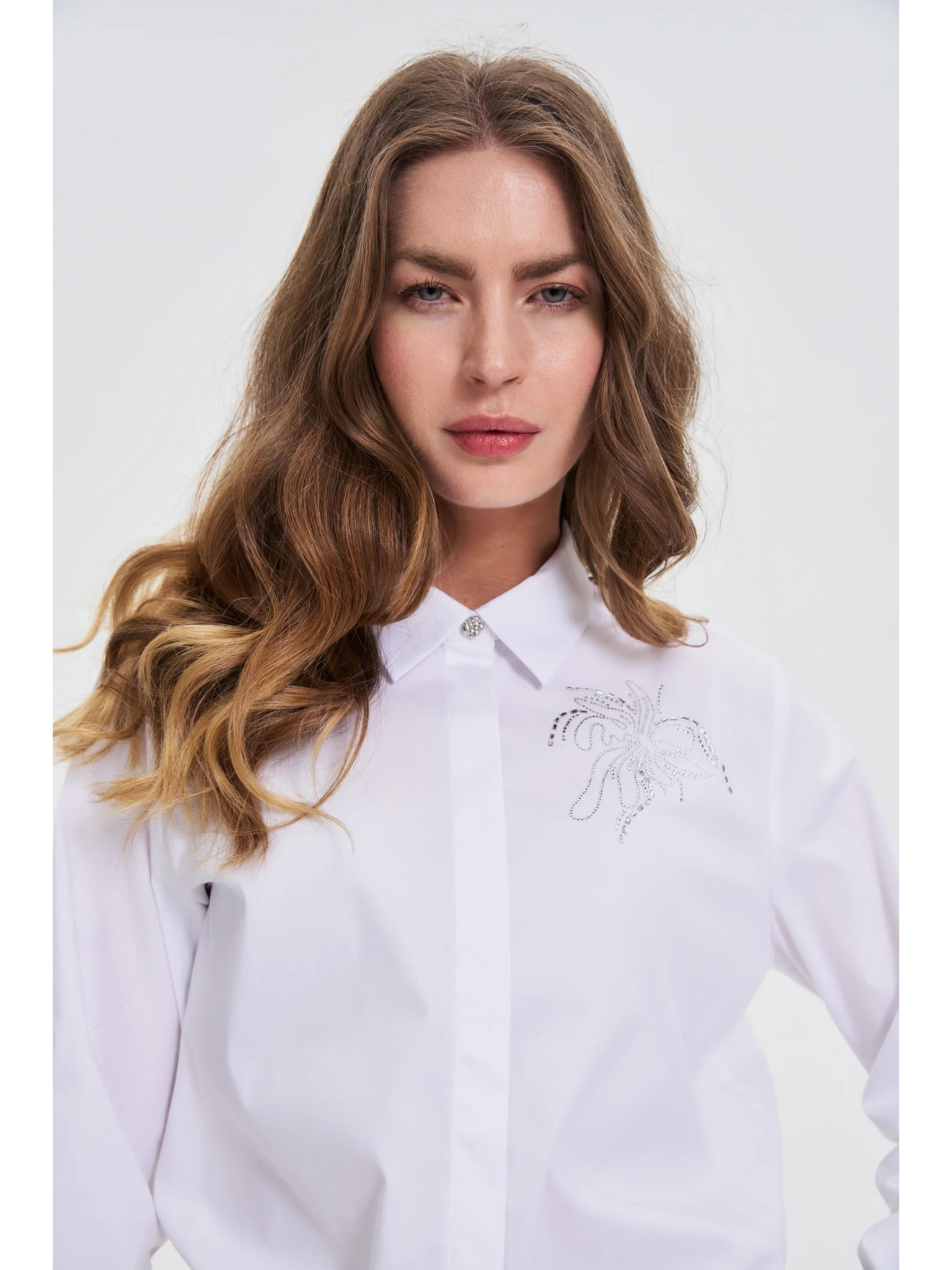 Бяла блуза с подвити ръкави Moodo