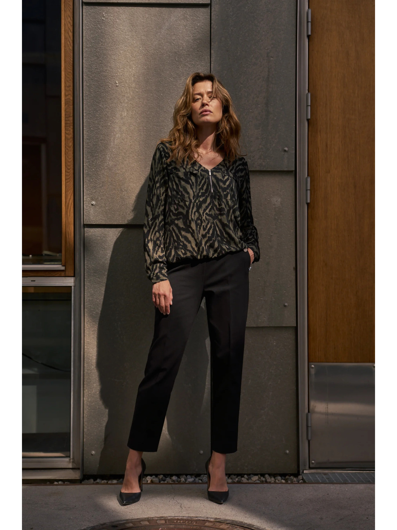 Тъмнооливкова вискозна риза Moodo