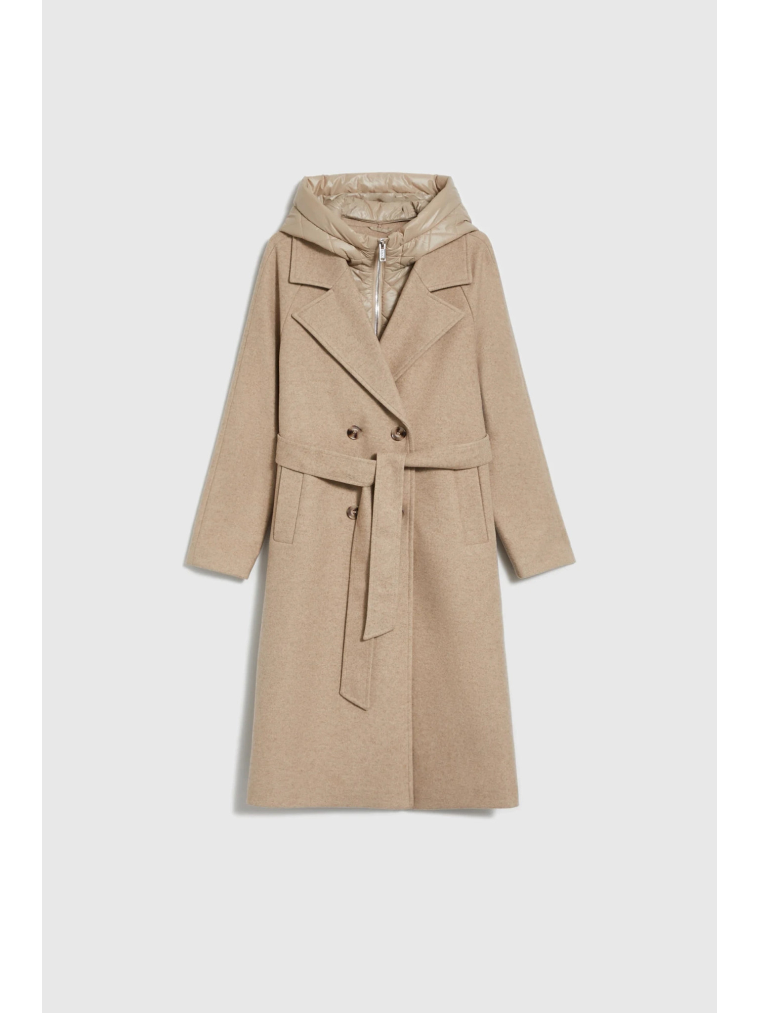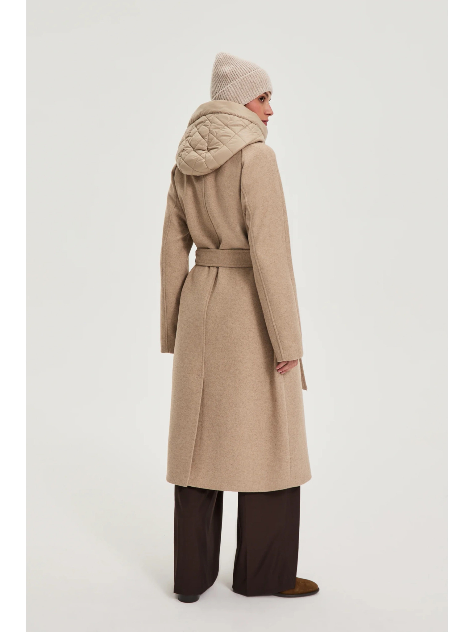 Карирано вълнено палто с качулка Marks & Spencer бежов
