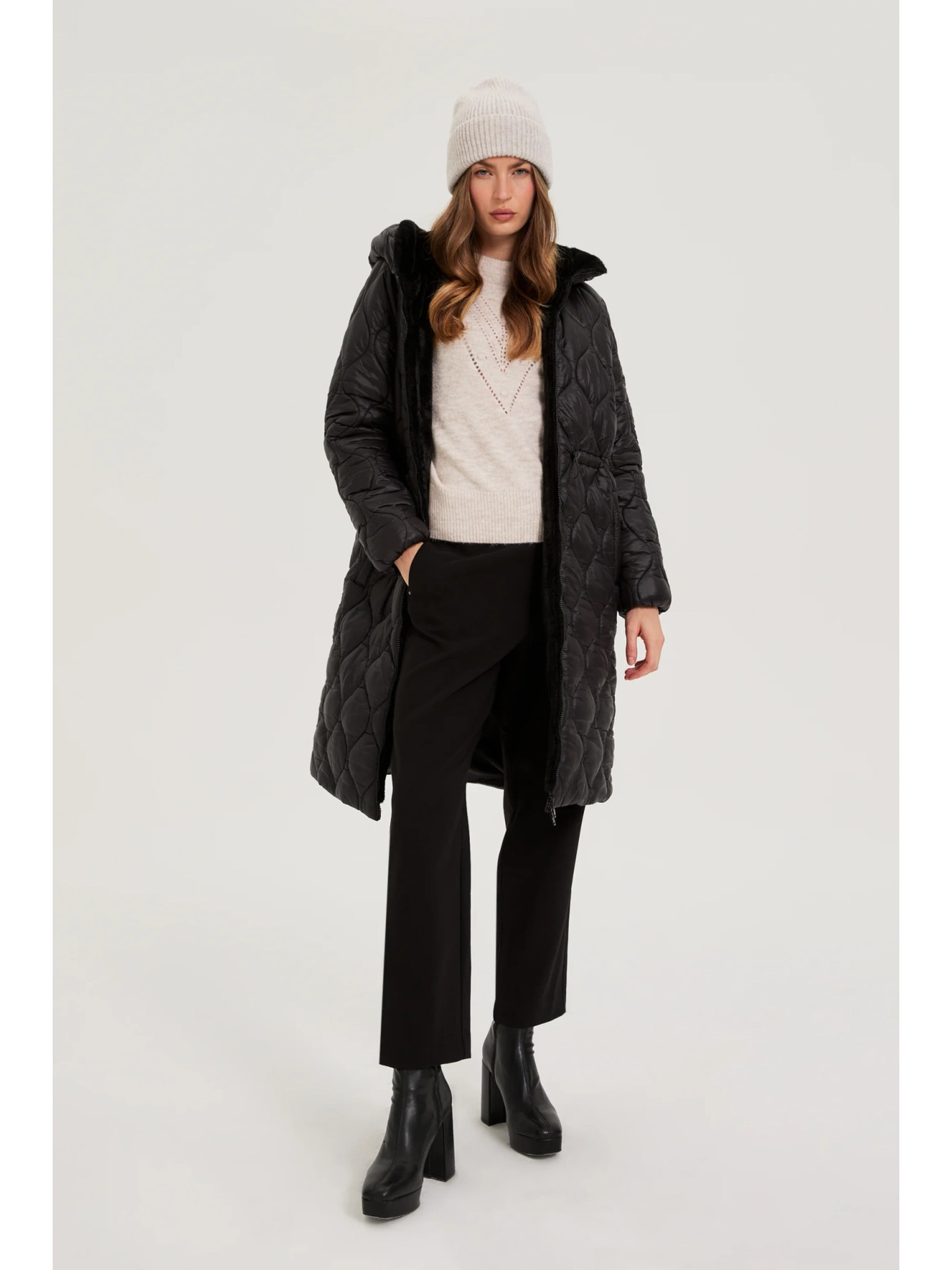 Черно дамско ватирано палто ORSAY