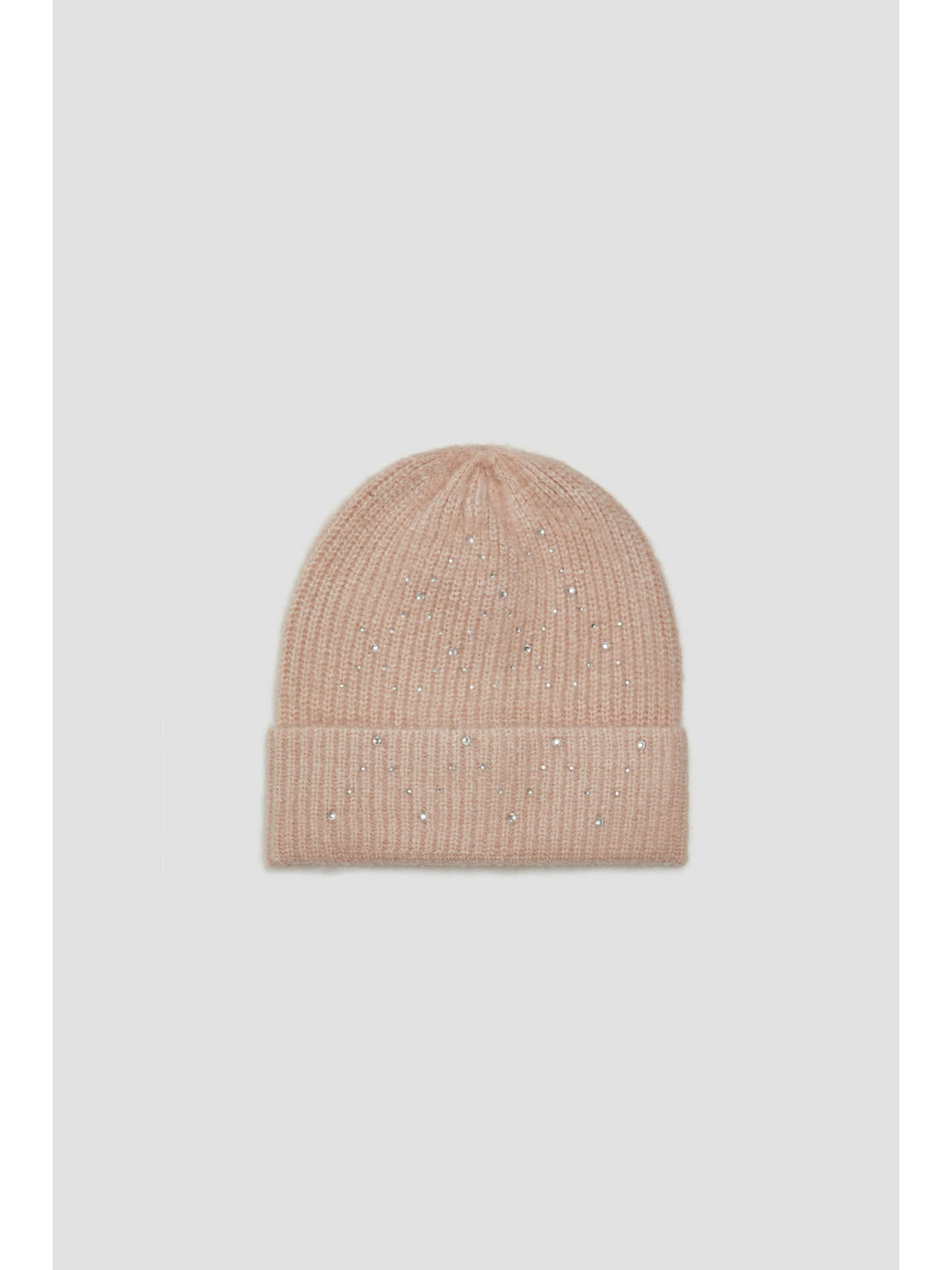 Ребрестa шапка с перли в сиво Moodo