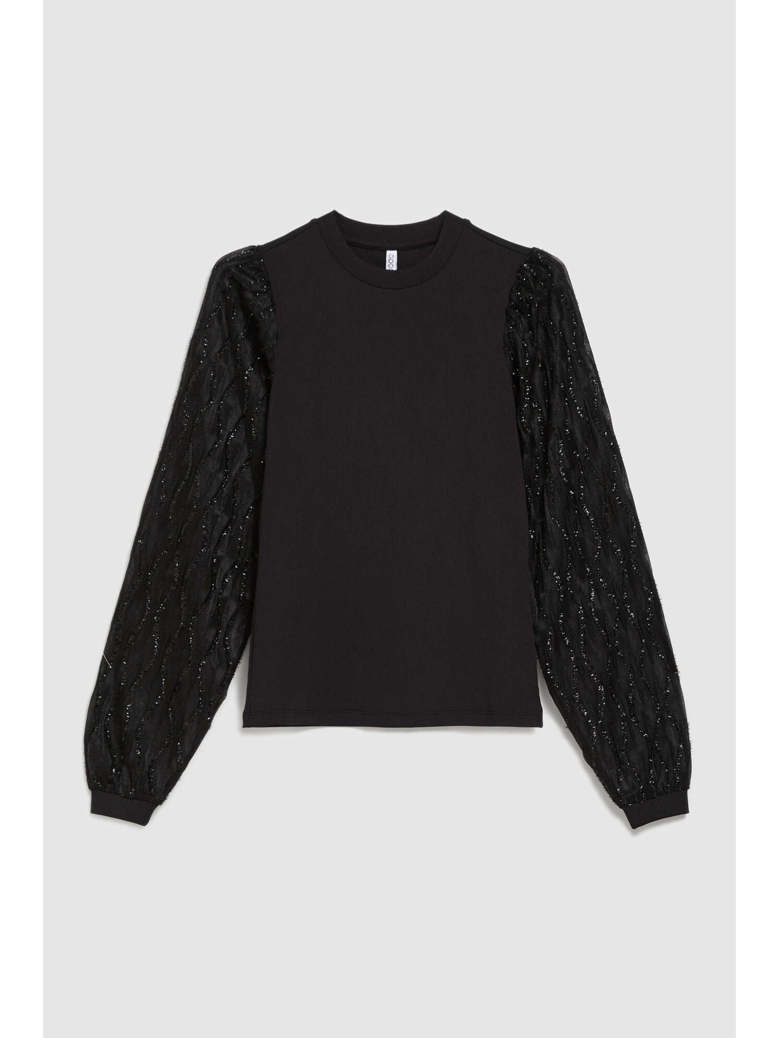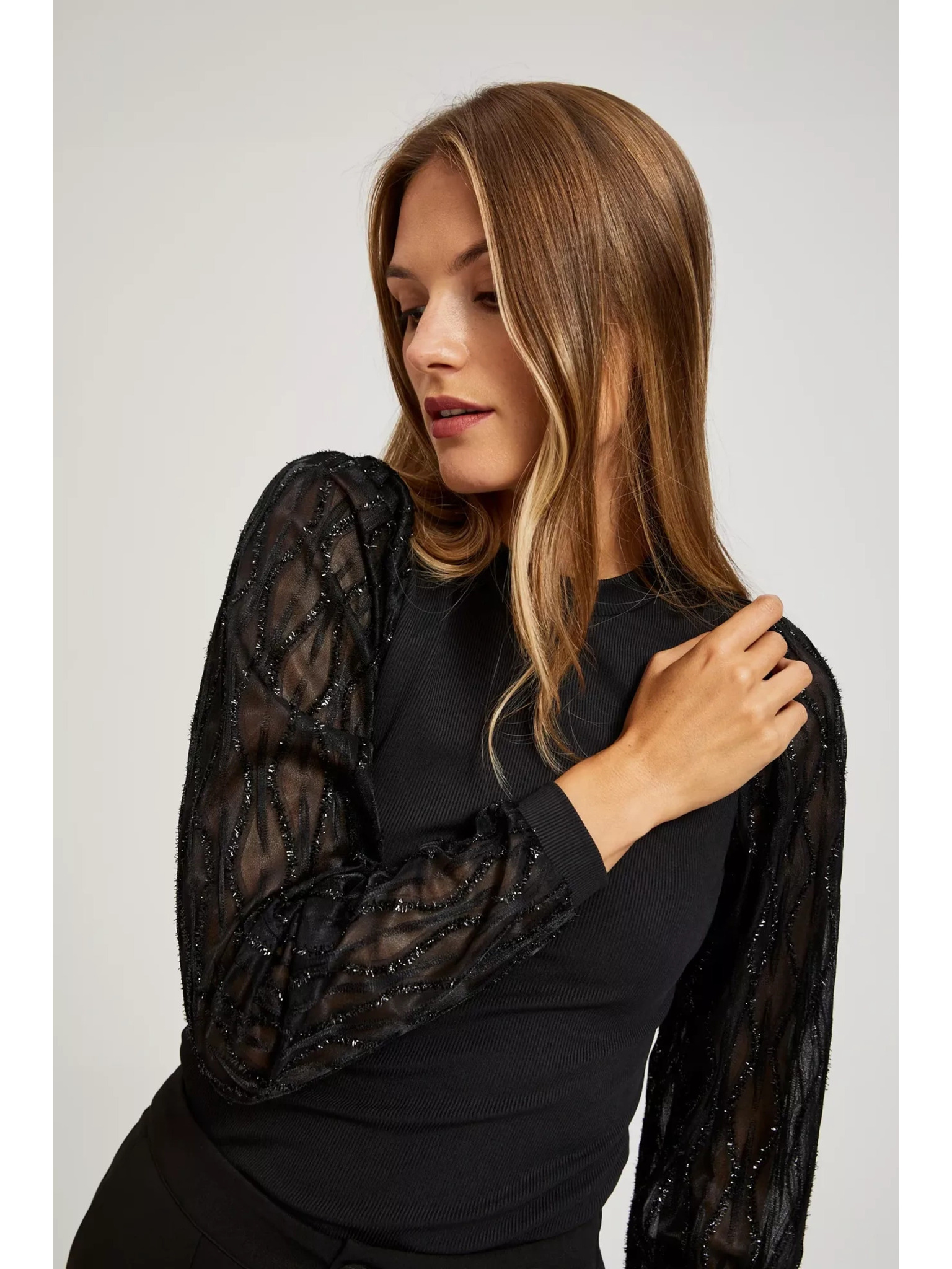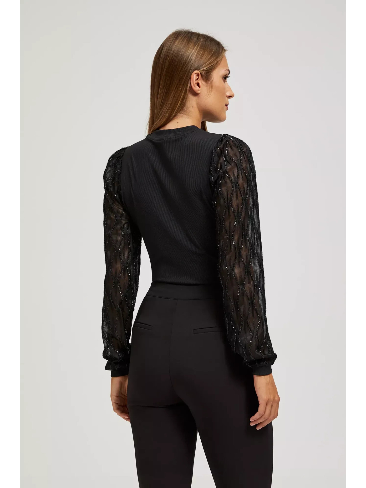 Черна блуза с декоративни ръкави Moodo