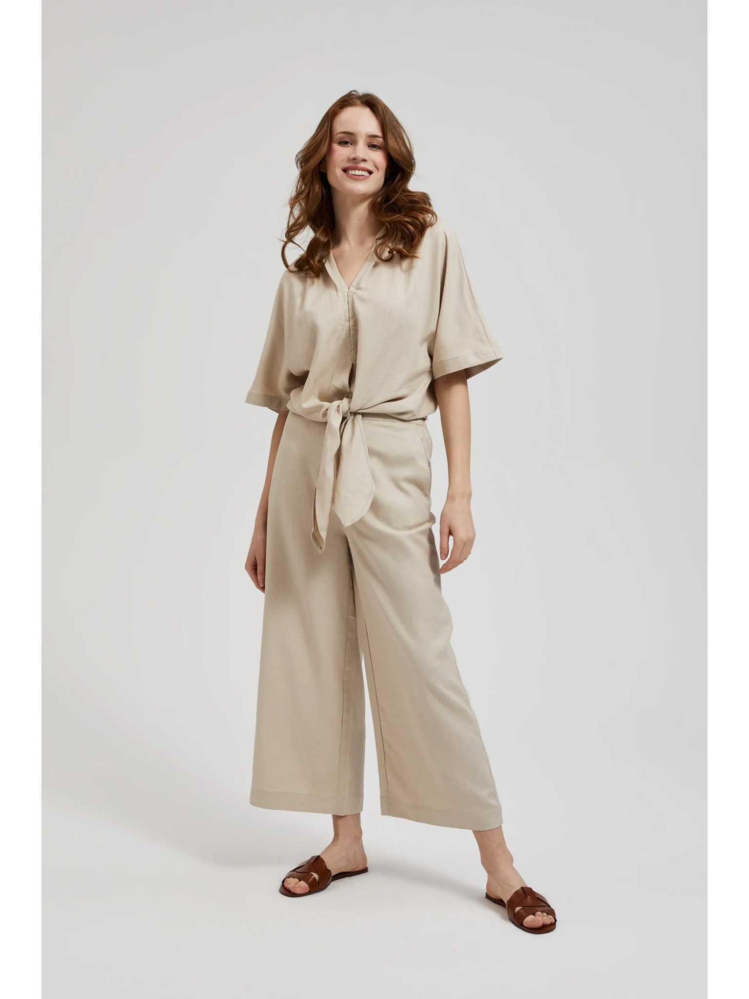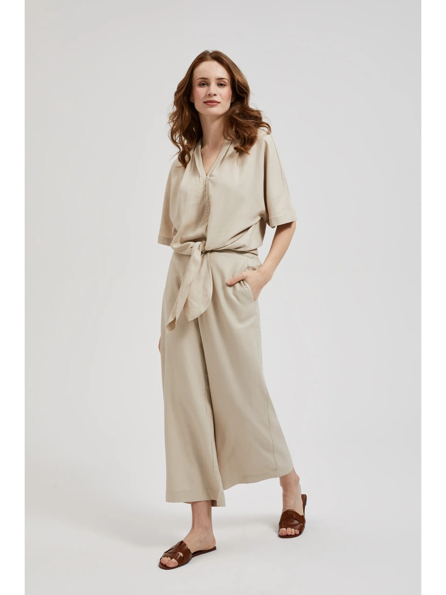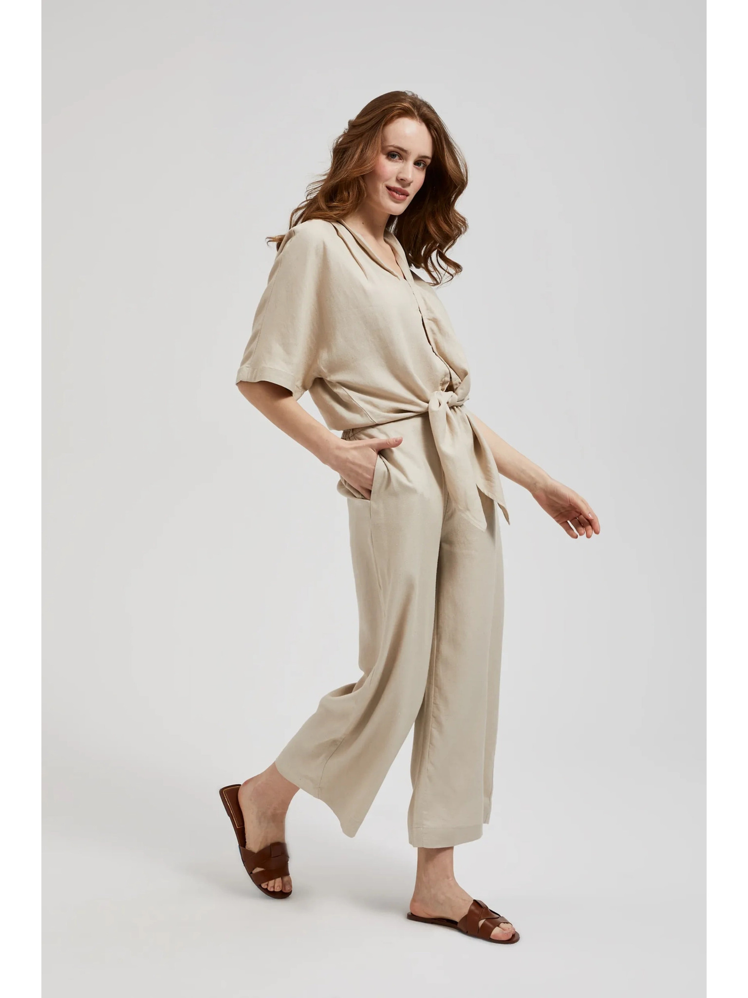 Ленени панталонки-пола бежови Moodo