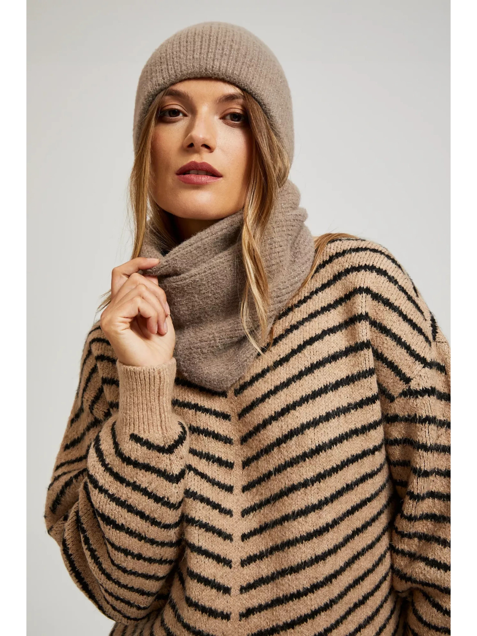 Щампован шал в бежово Moodo