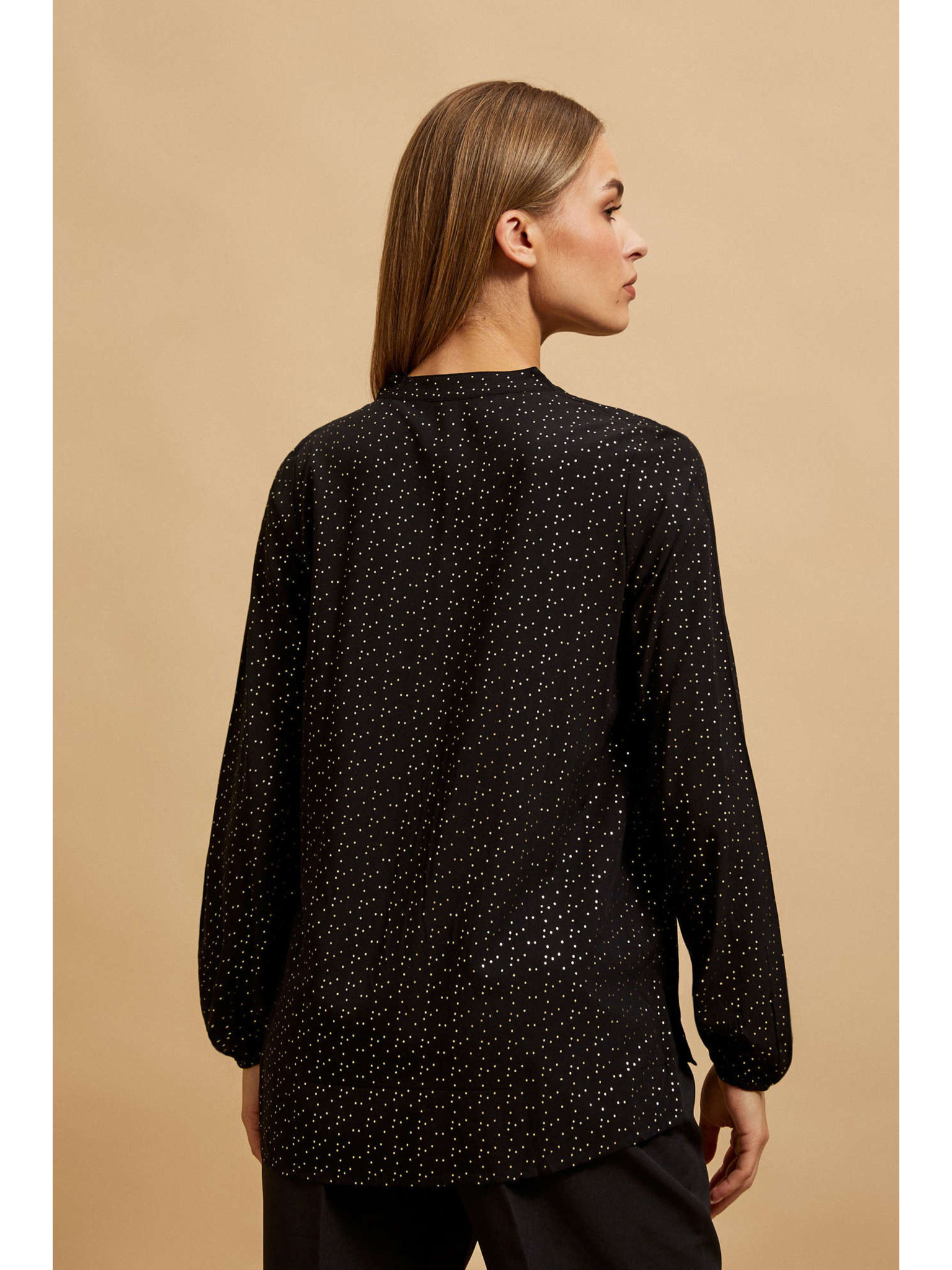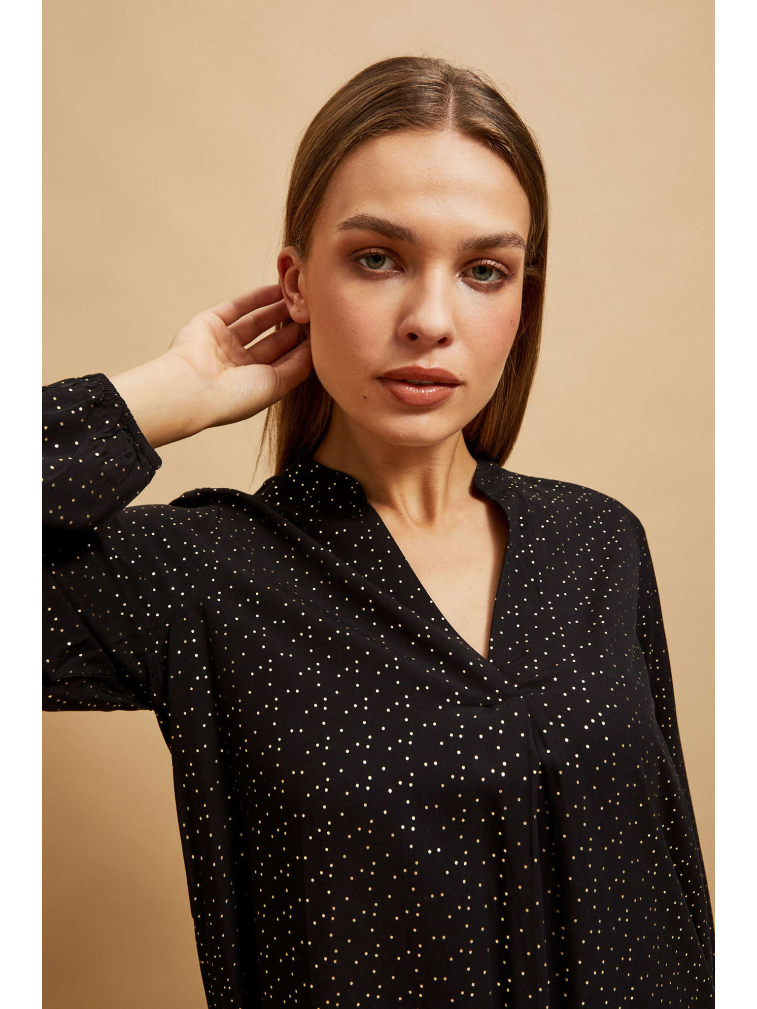 Черна риза с V-образен деколте Moodo