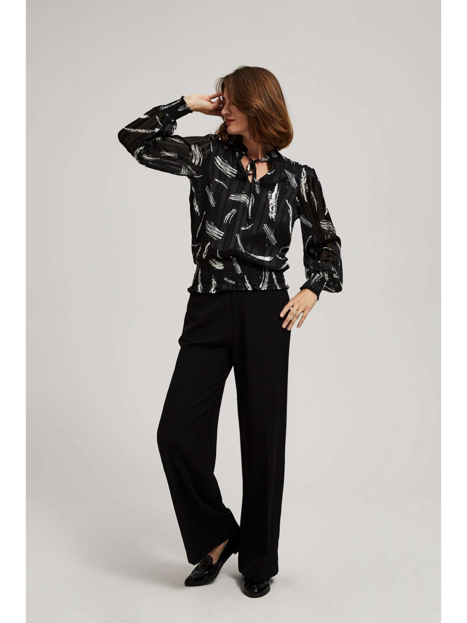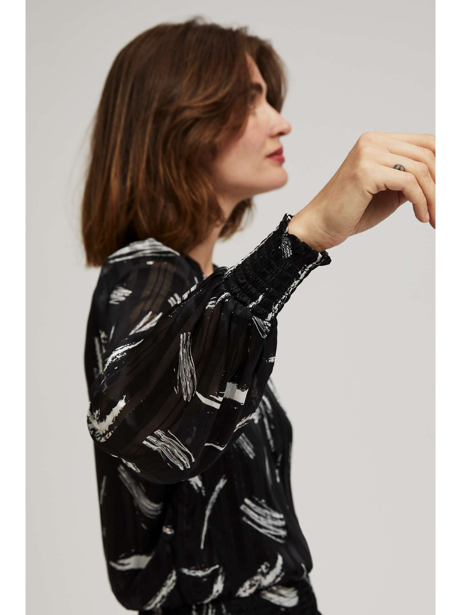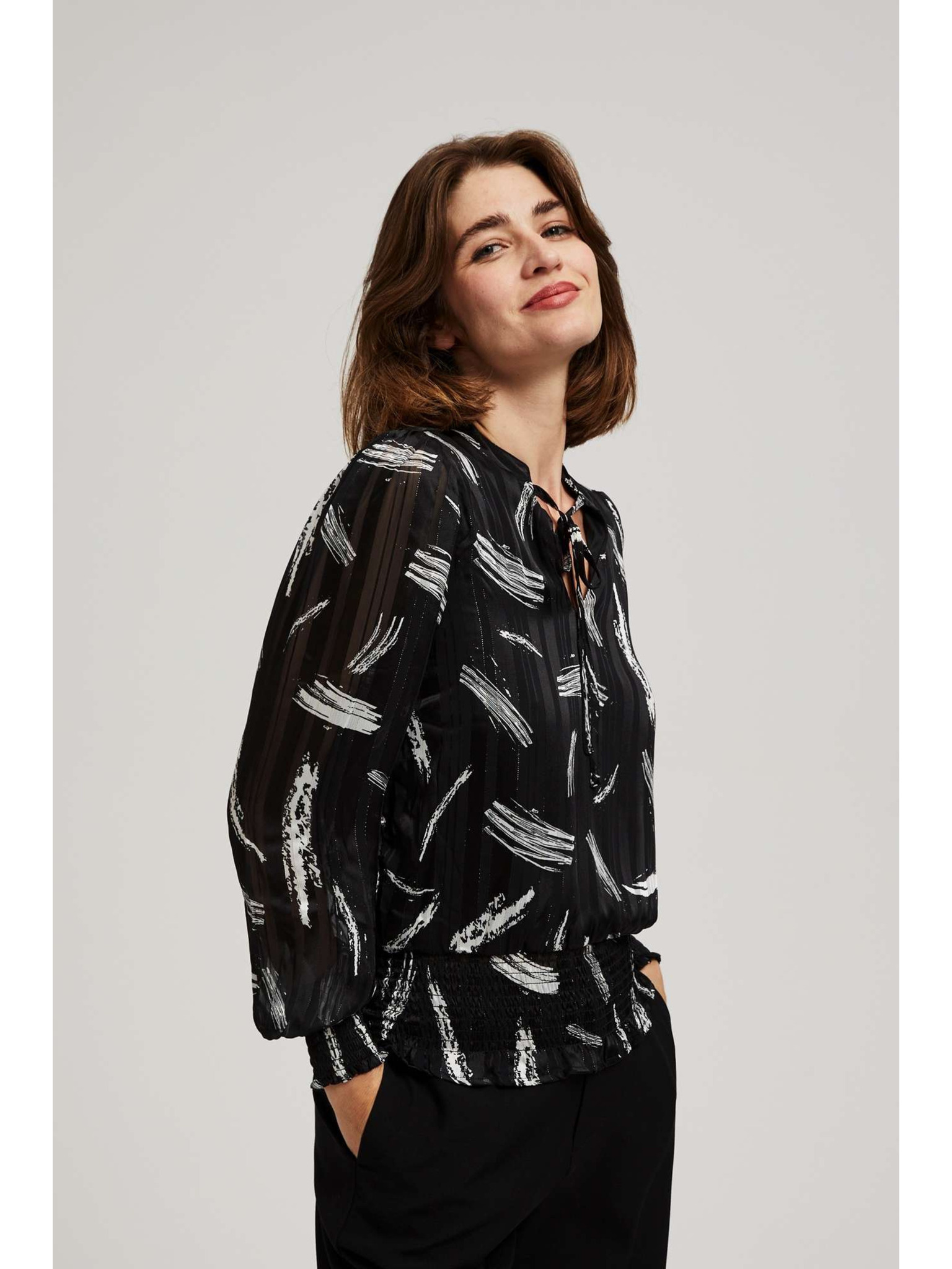 Дамска черна блуза с декоративни копчета