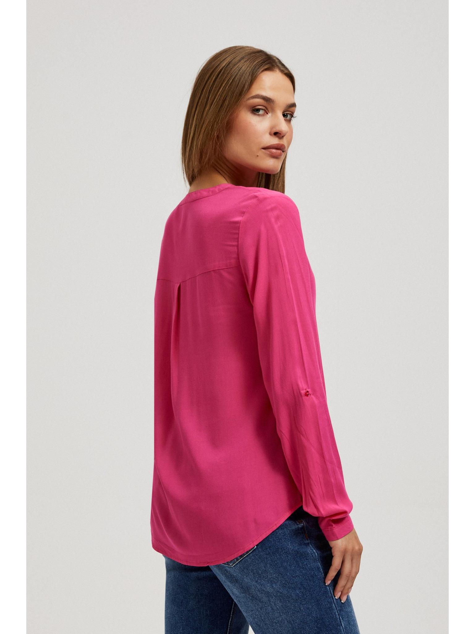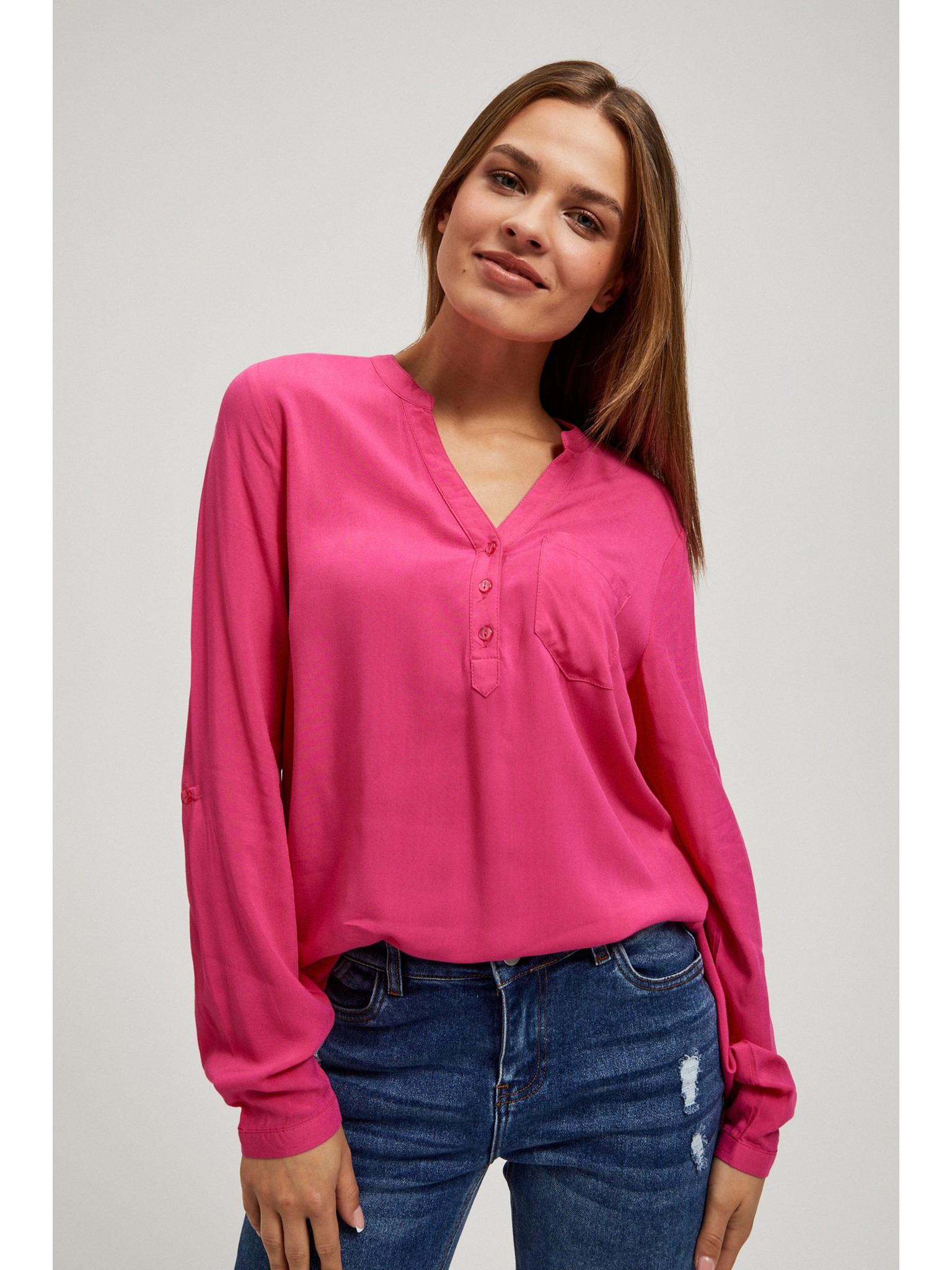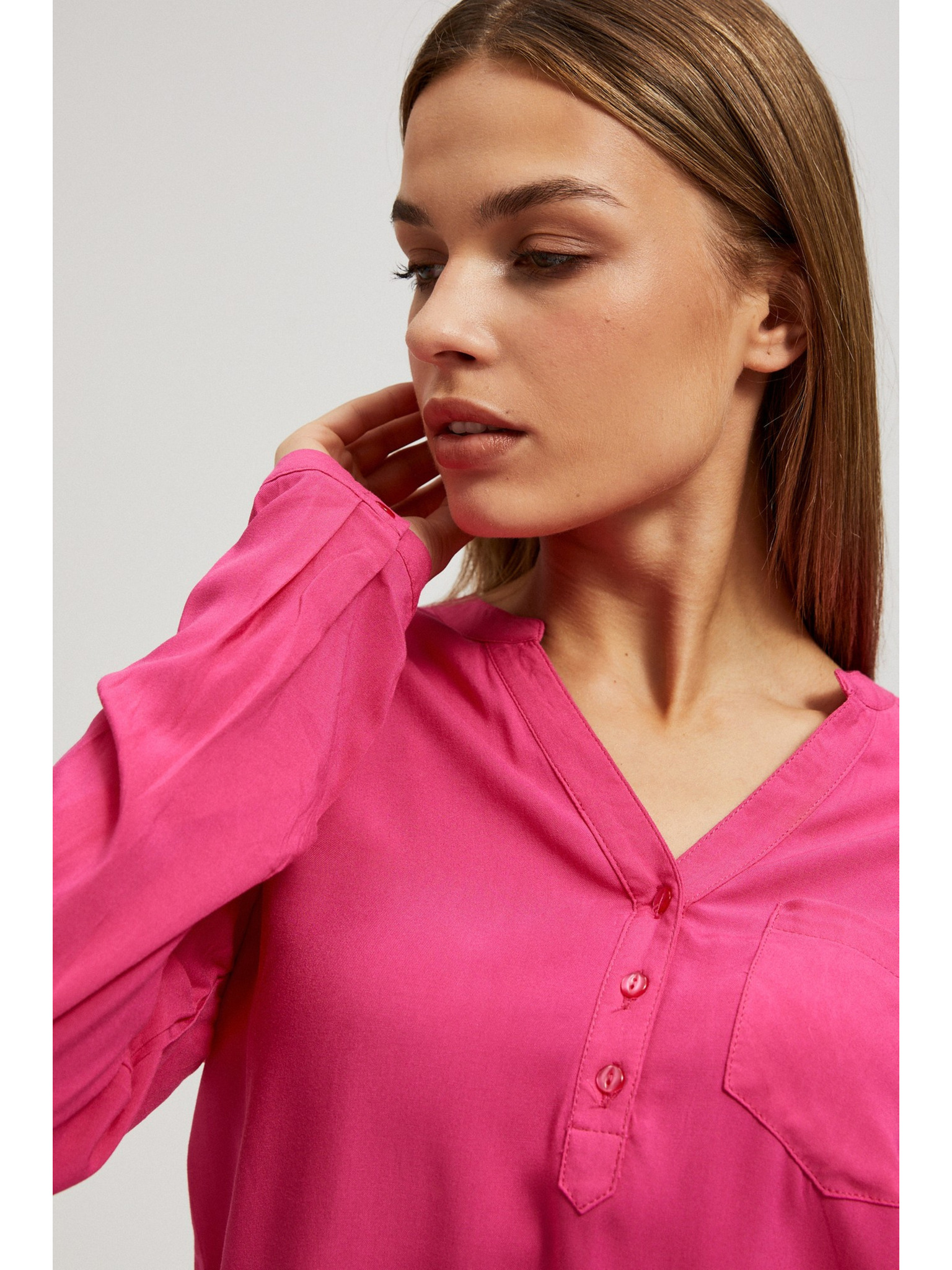 Лилава риза с V-образно деколте и декоративни копчета Moodo