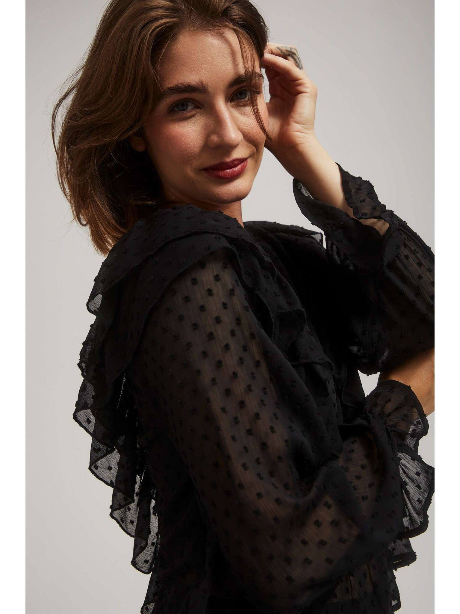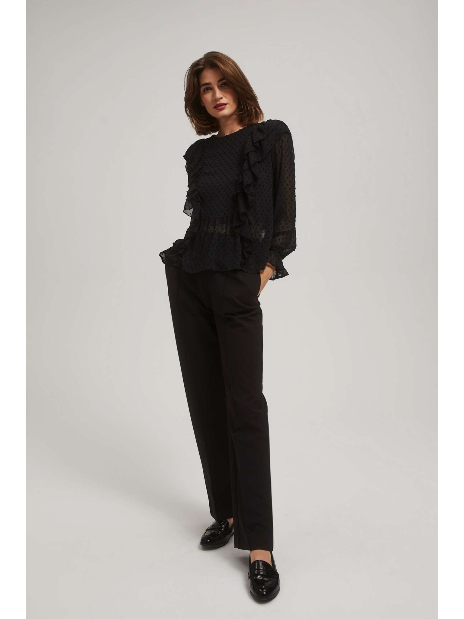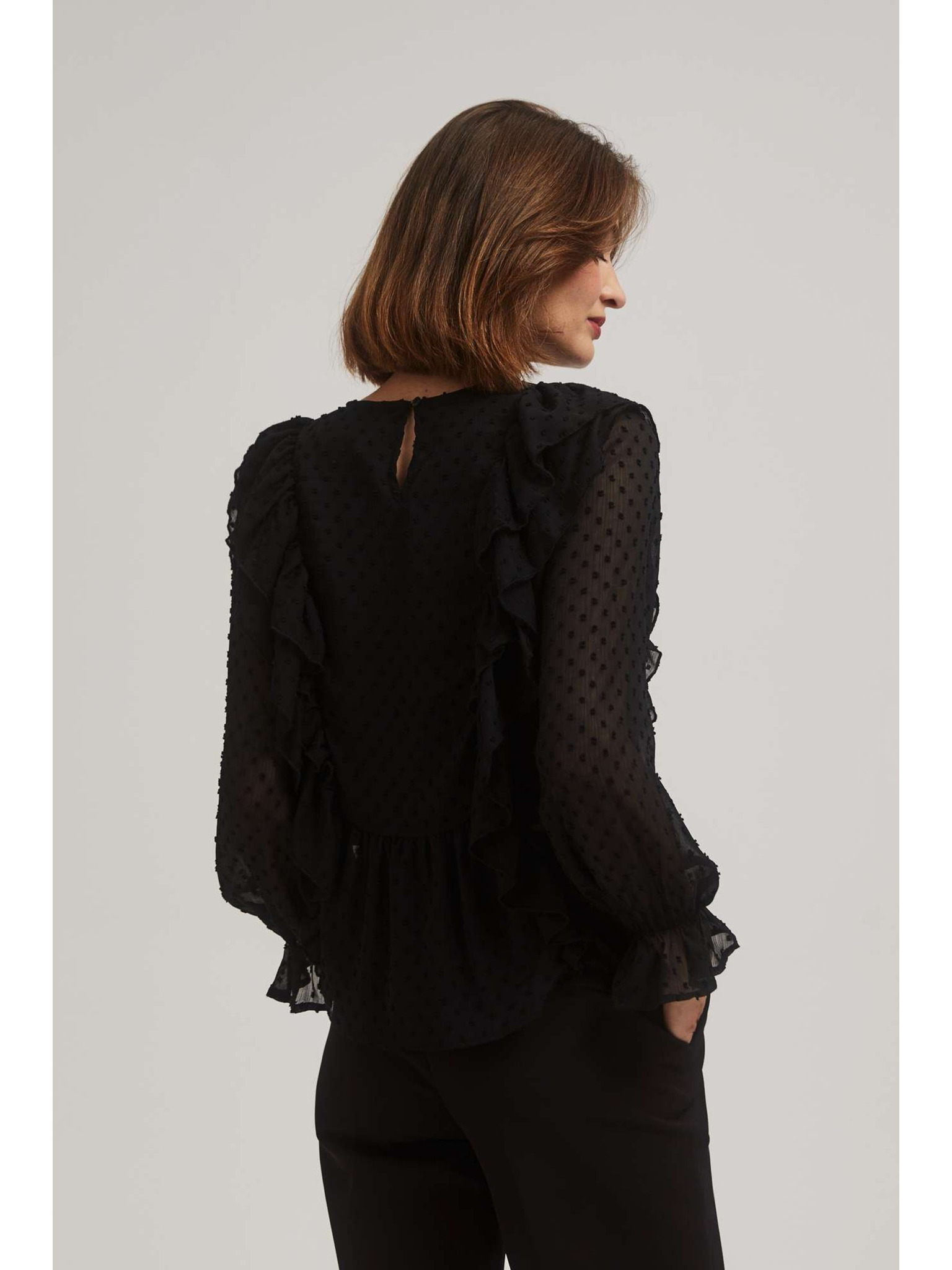 Черна риза с волани и дълги ръкави Moodo