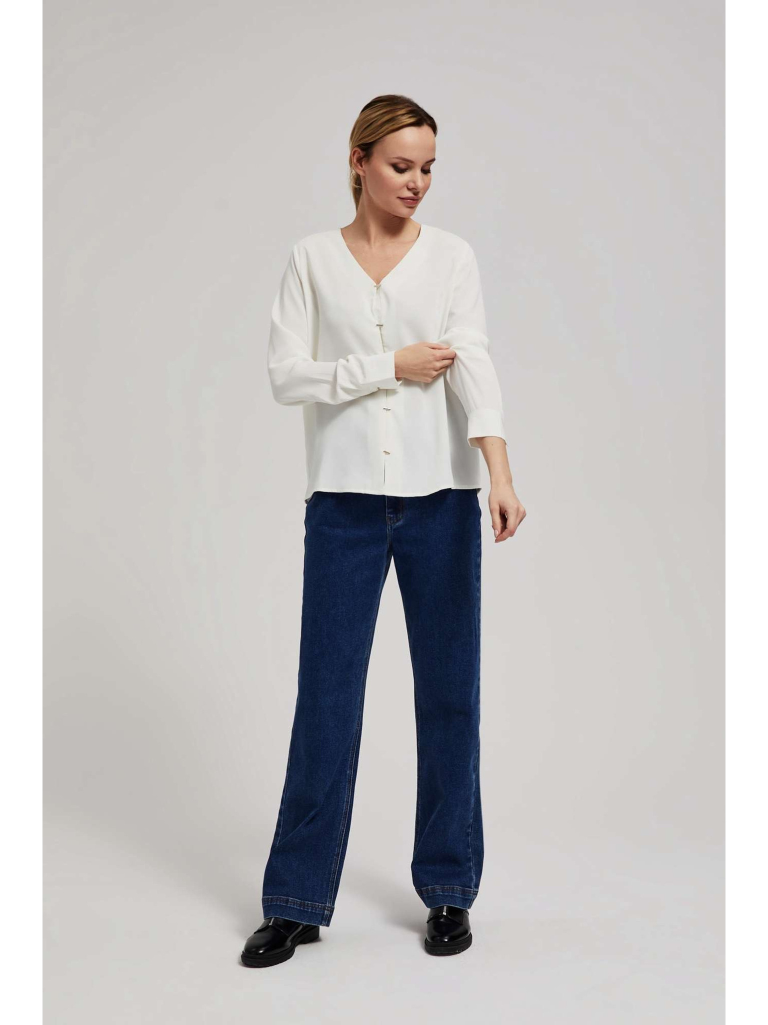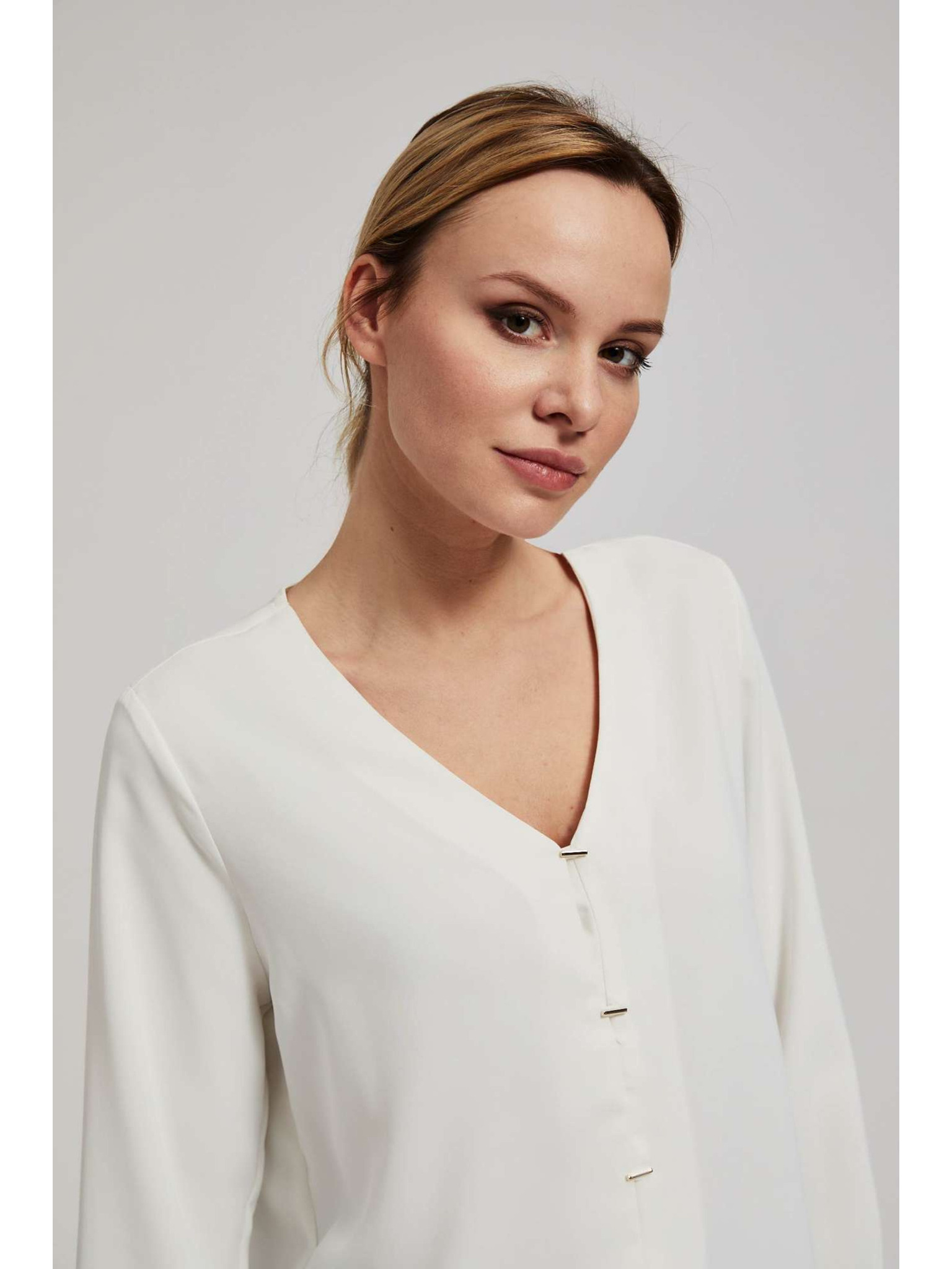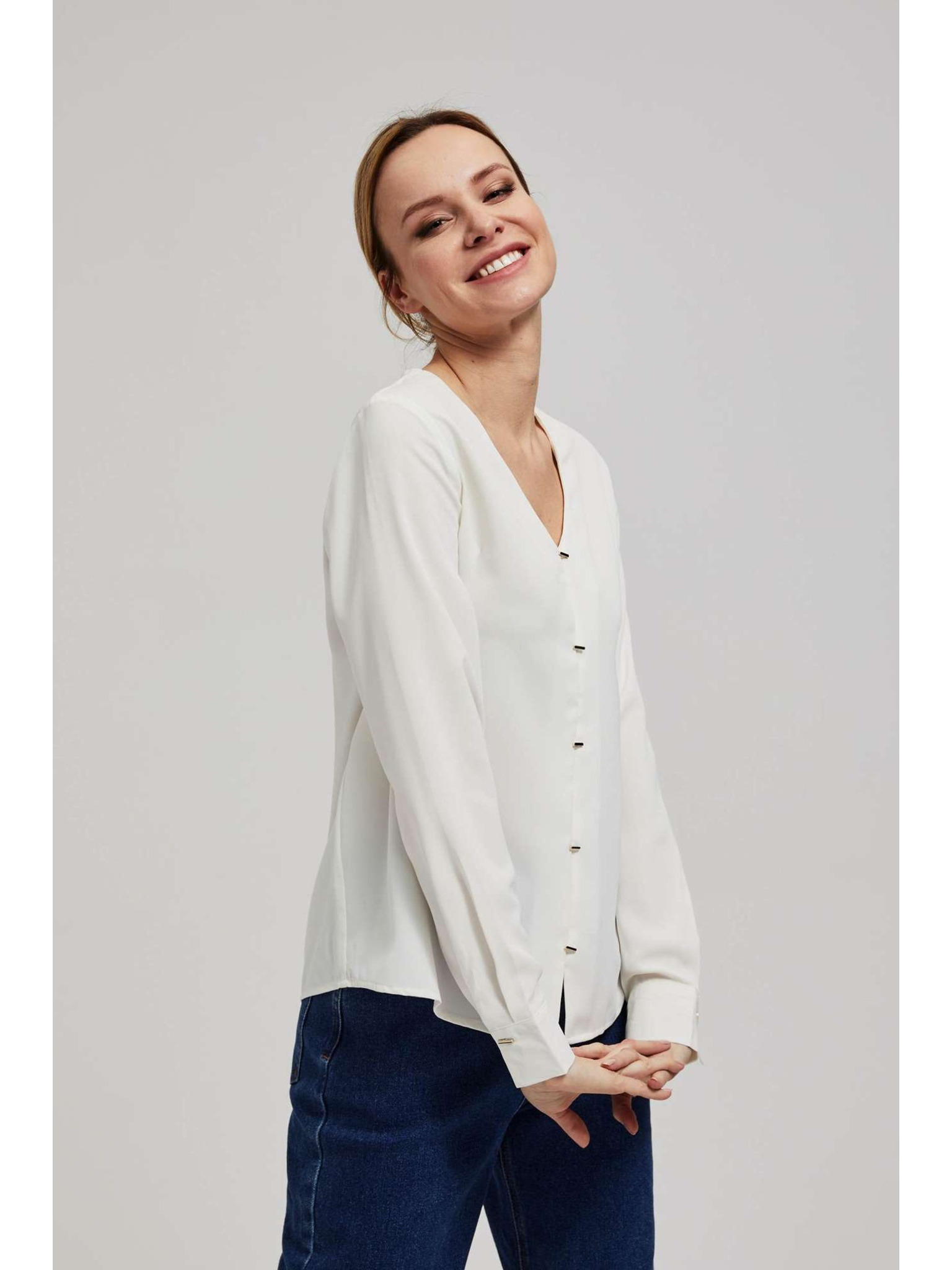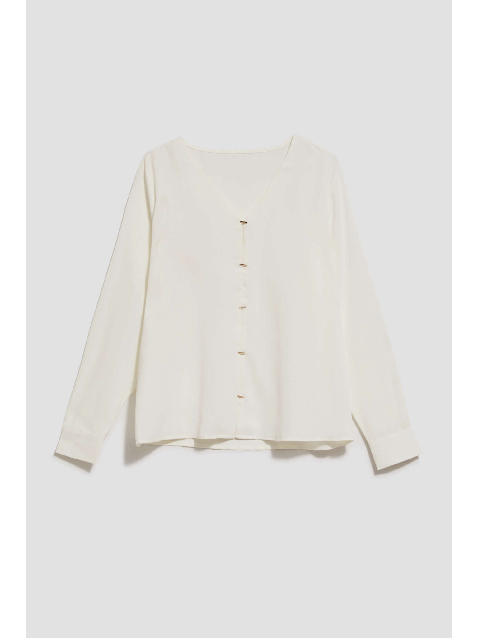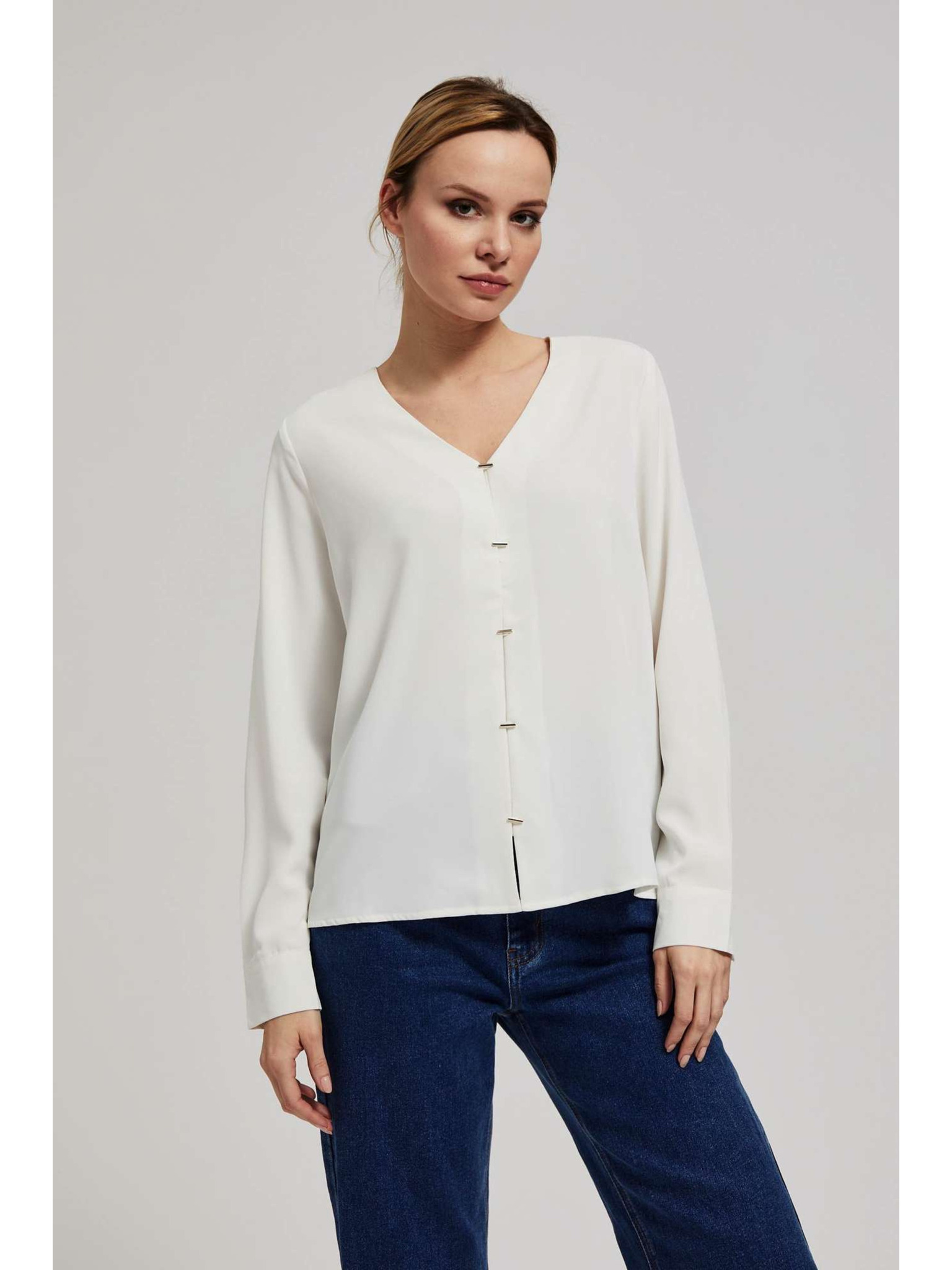 Риза с V-образен деколте и фини перлени копчета перлена Moodo