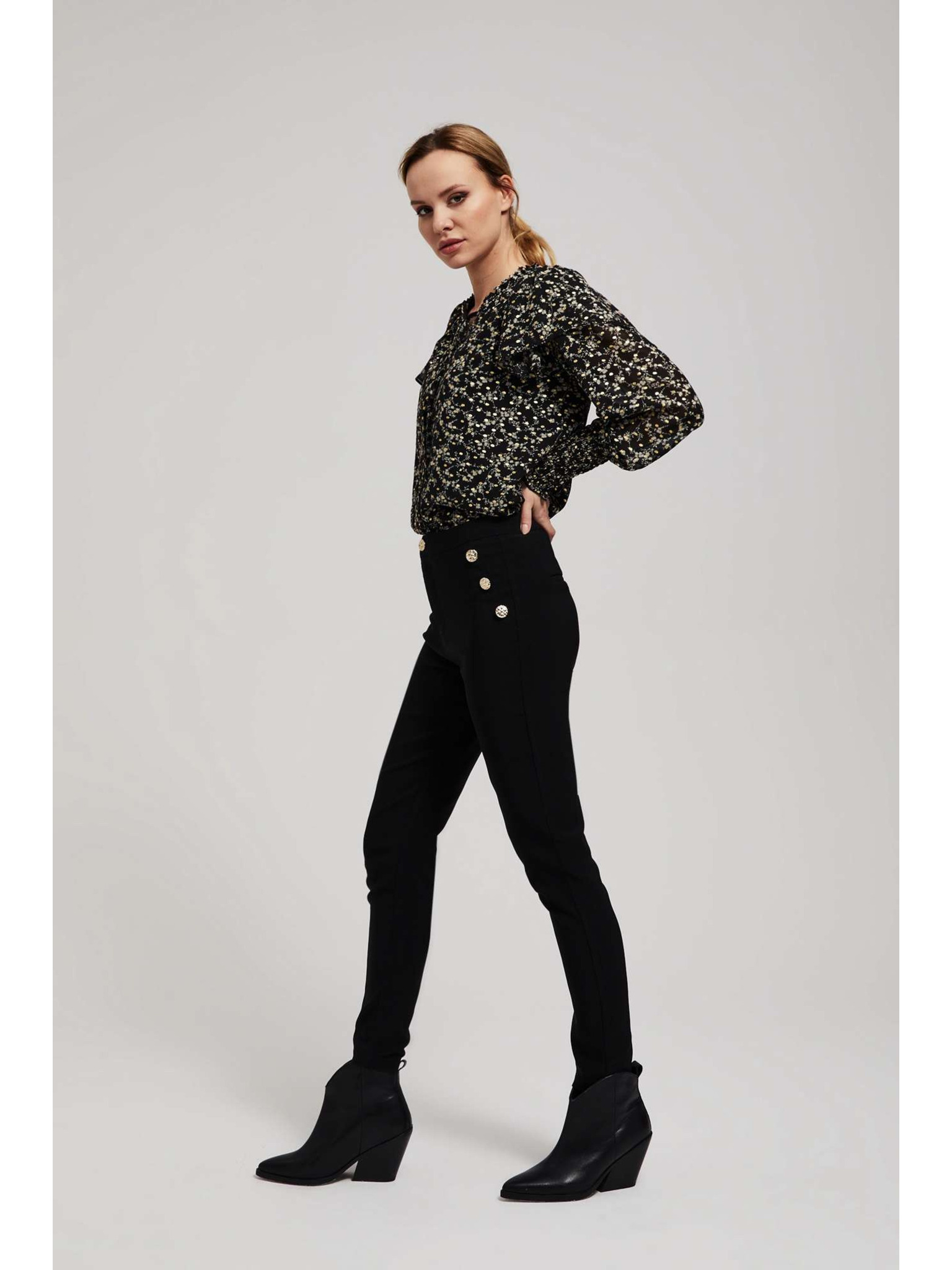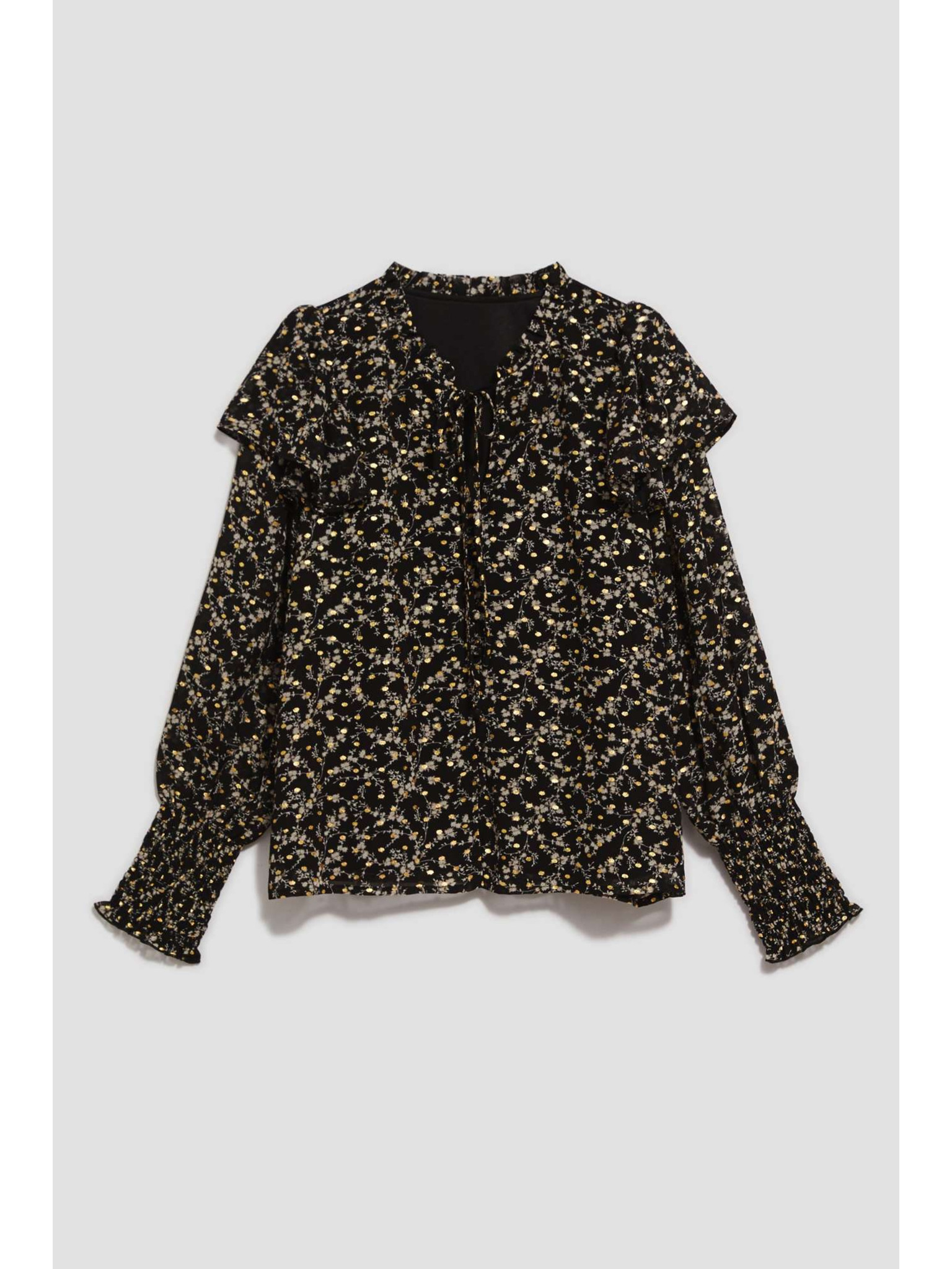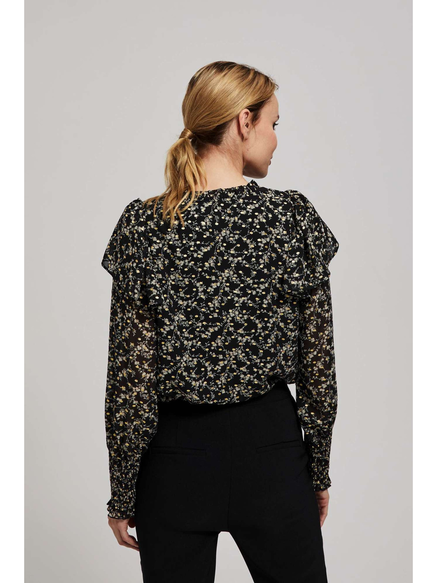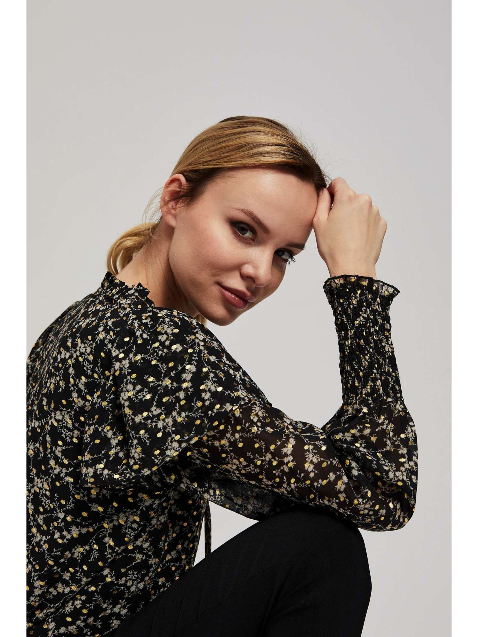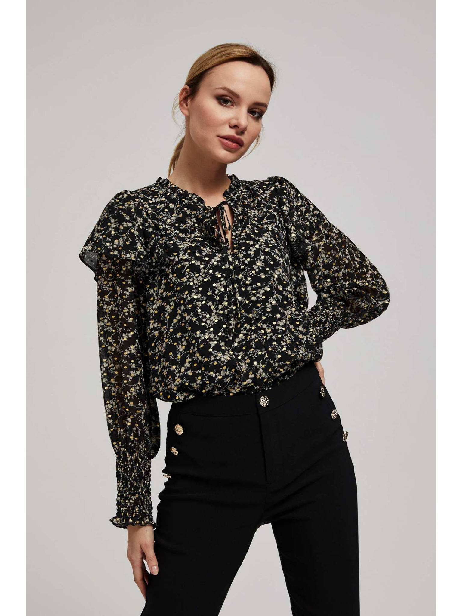 Щампована риза с връзване на деколтето черна Moodo