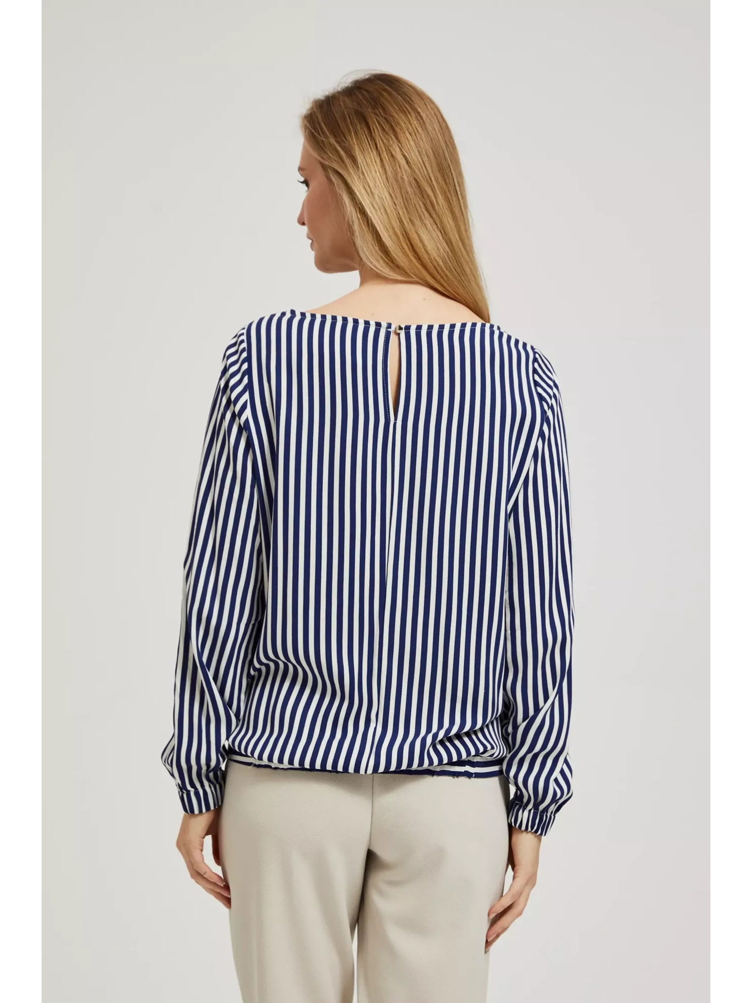 Бяло-тъмносиня риза с кръгло деколте и тънки презрамки Moodo