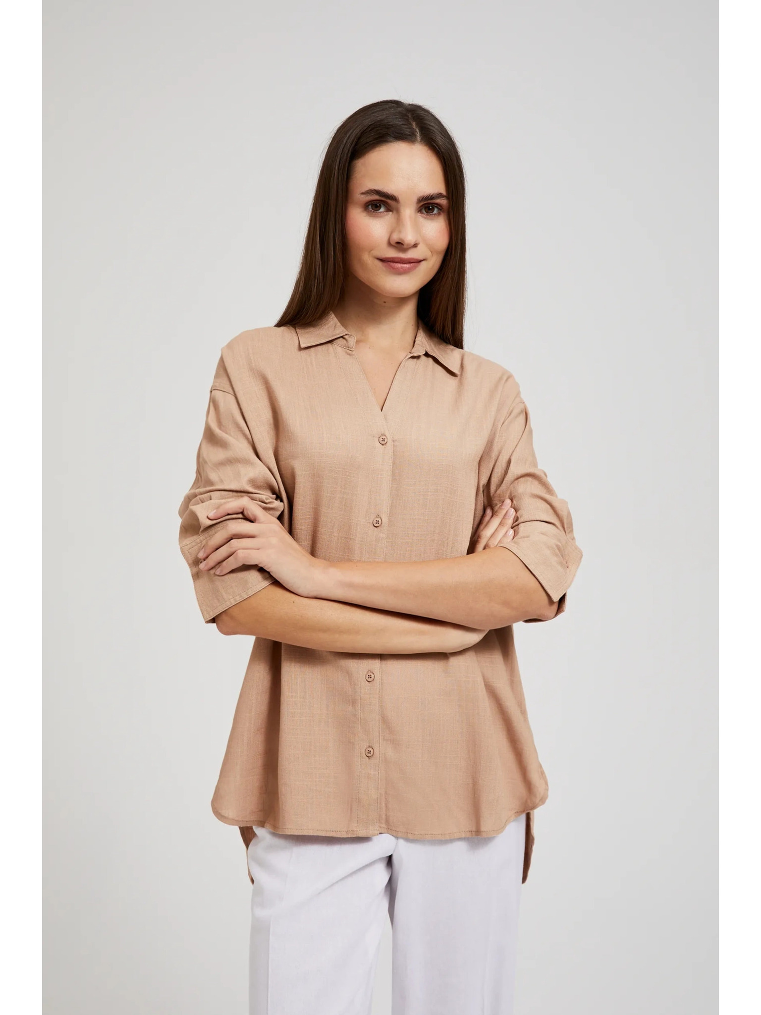 Кафяво-розова дамска шарена блуза Moodo