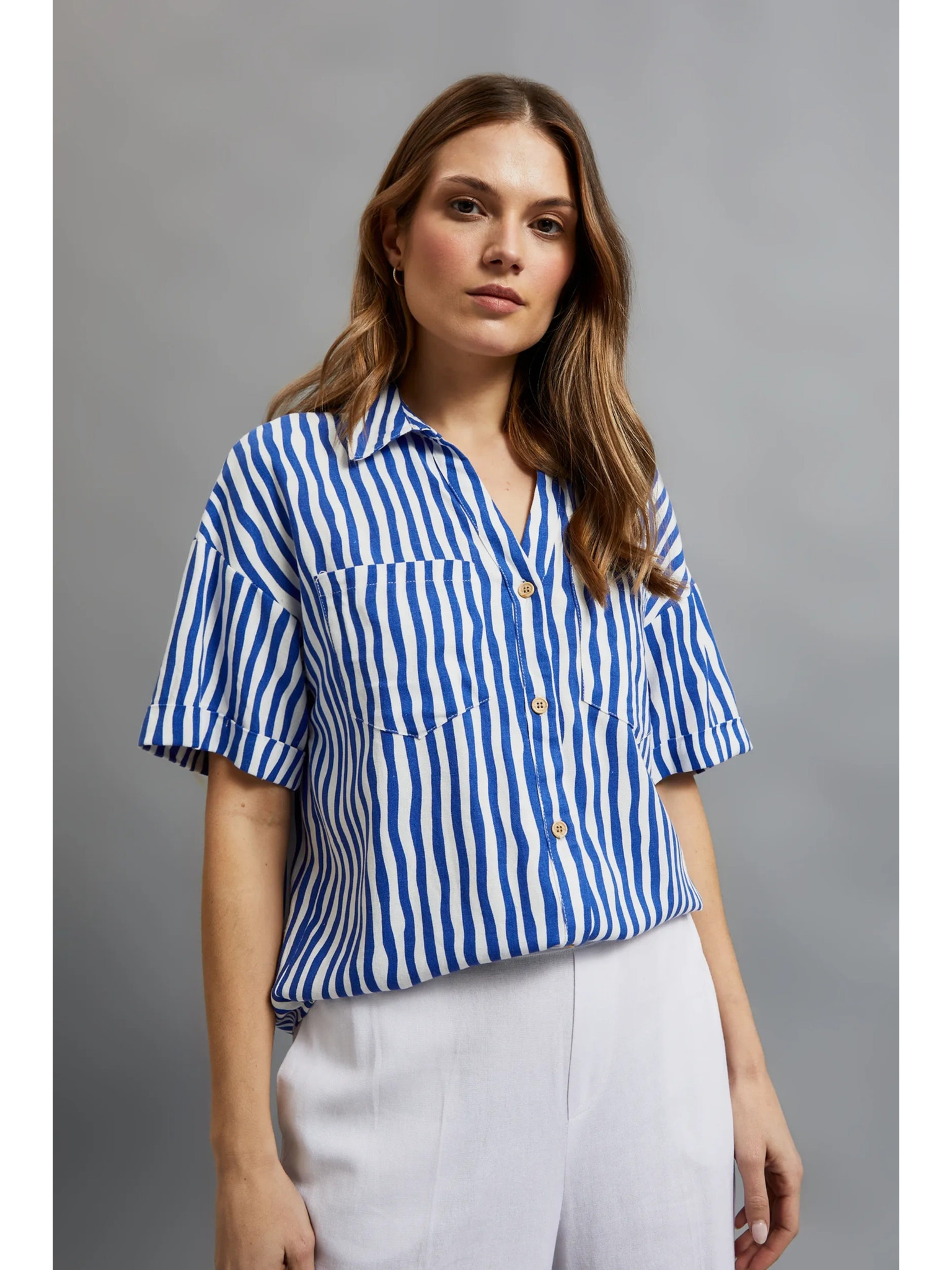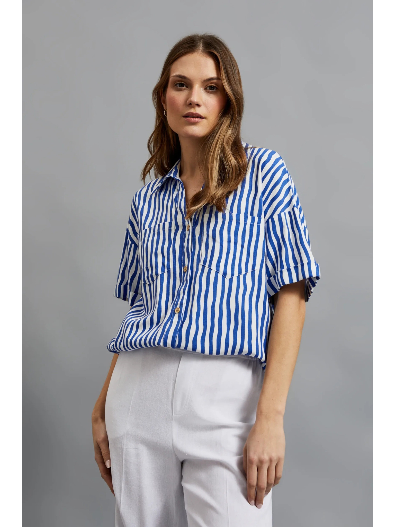 Бяла блуза с декоративни копчета