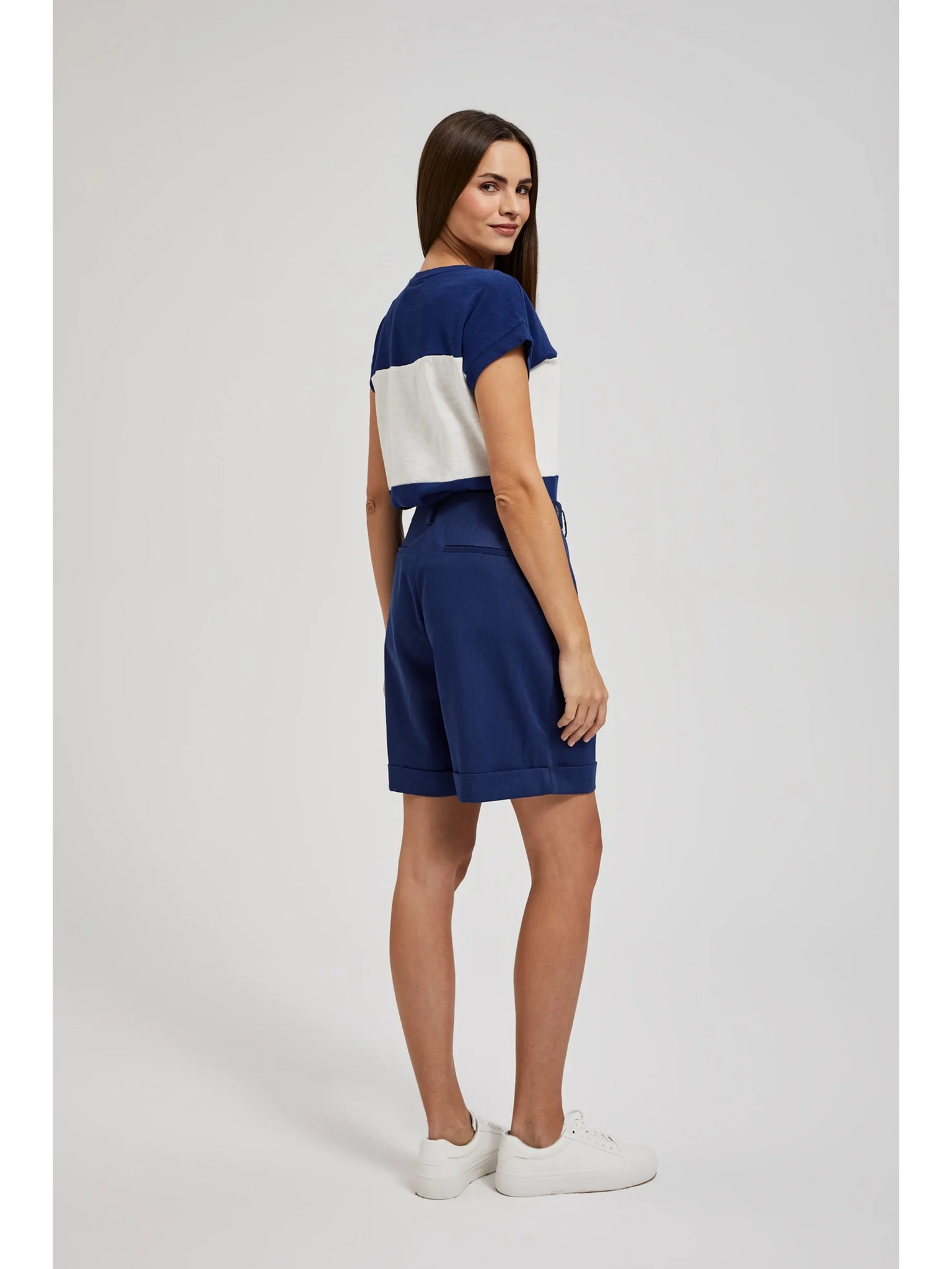Тъмно сини дамски шарени шорти Moodo
