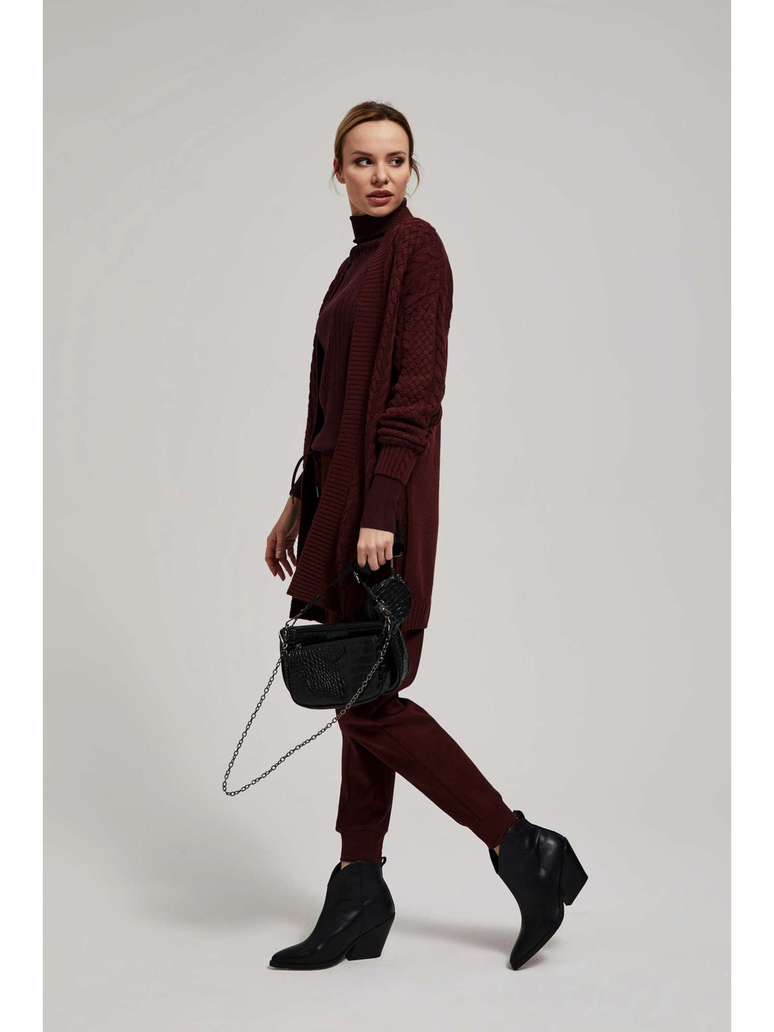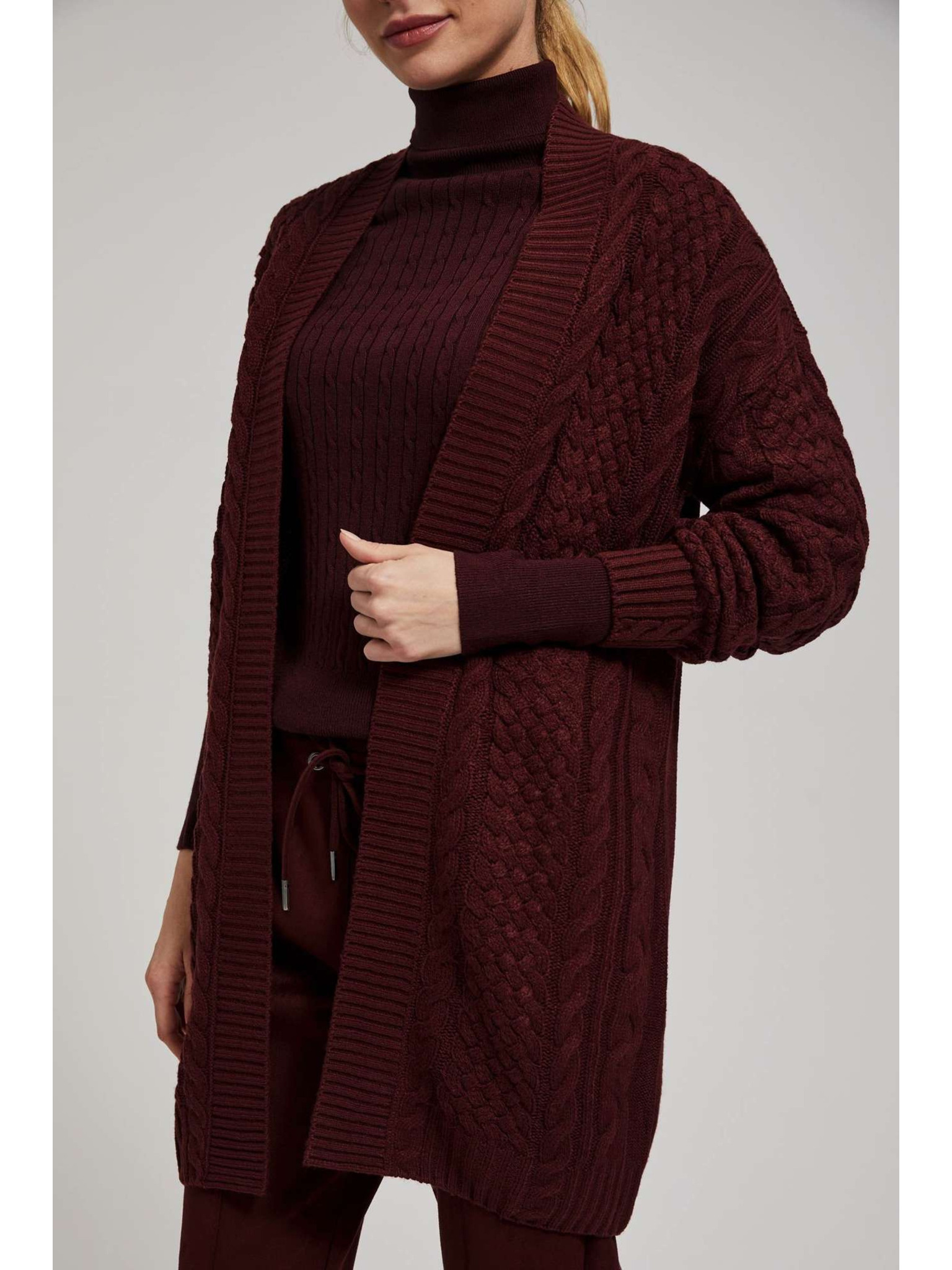 Плетен бежов кардиган Moodo