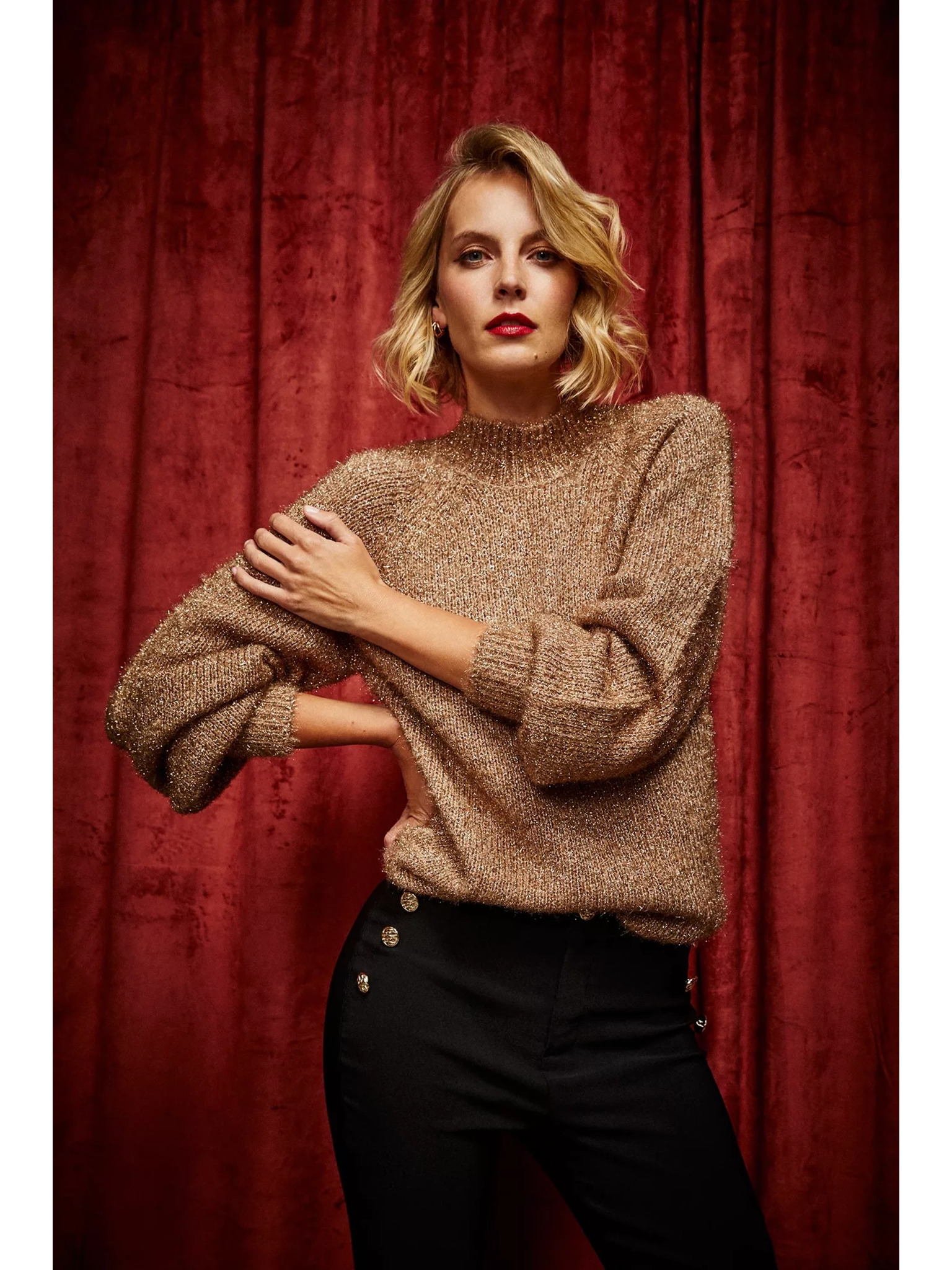 • Състав на материала: 40% ПОЛИЕСТЕР, 30% МЕТАЛНА НИШКА, 28% АКРИЛ, 2% ЕЛАСТАН