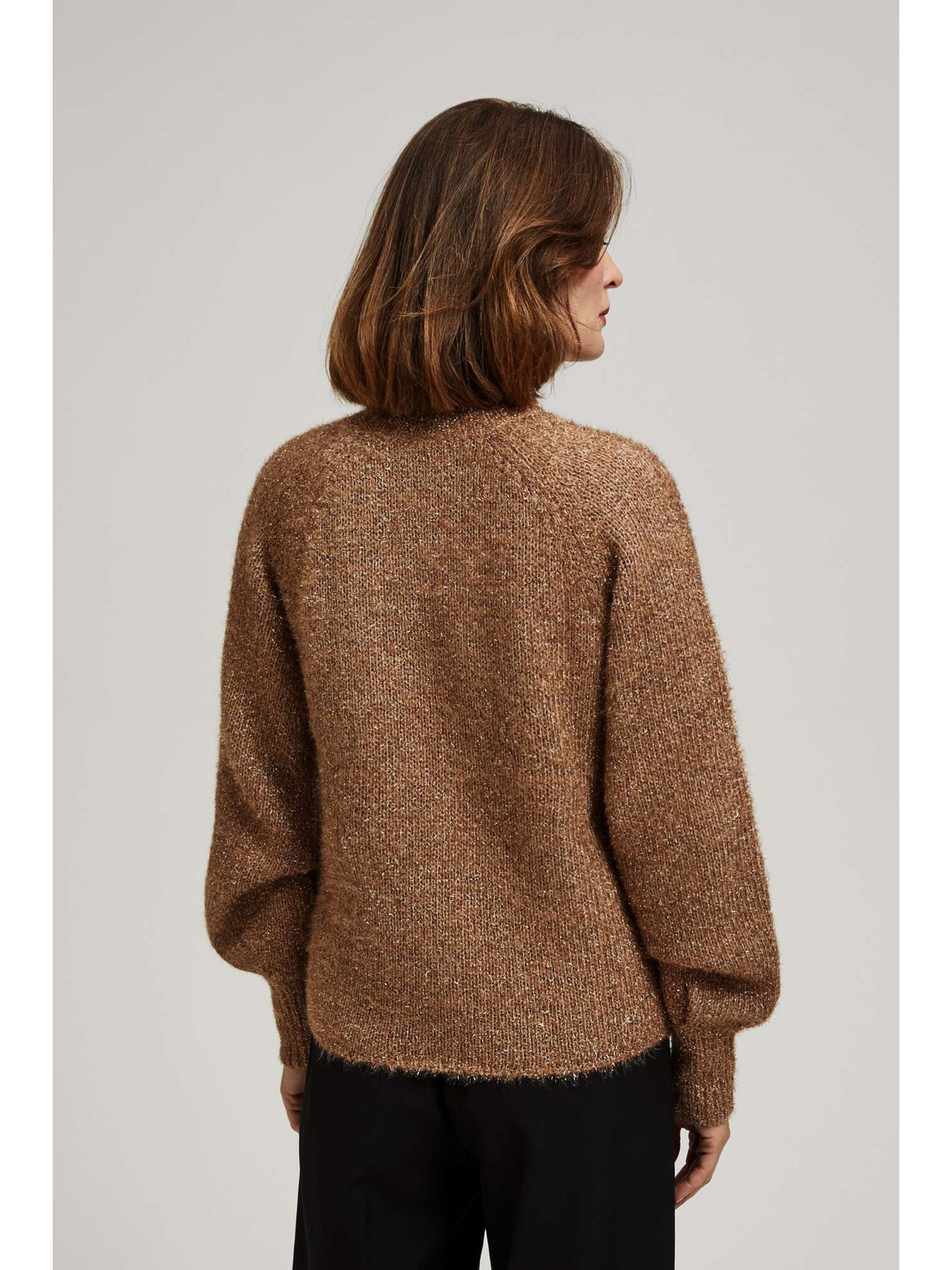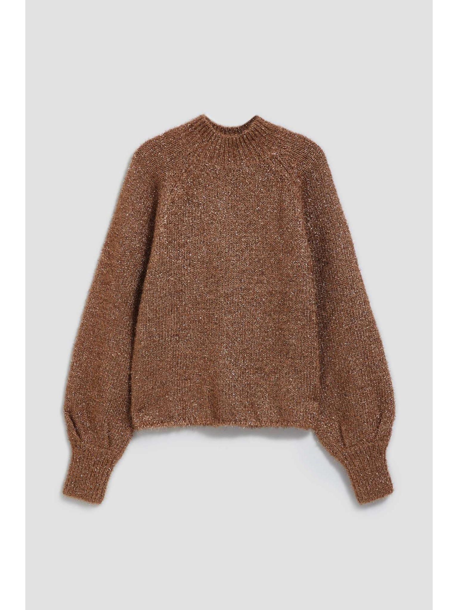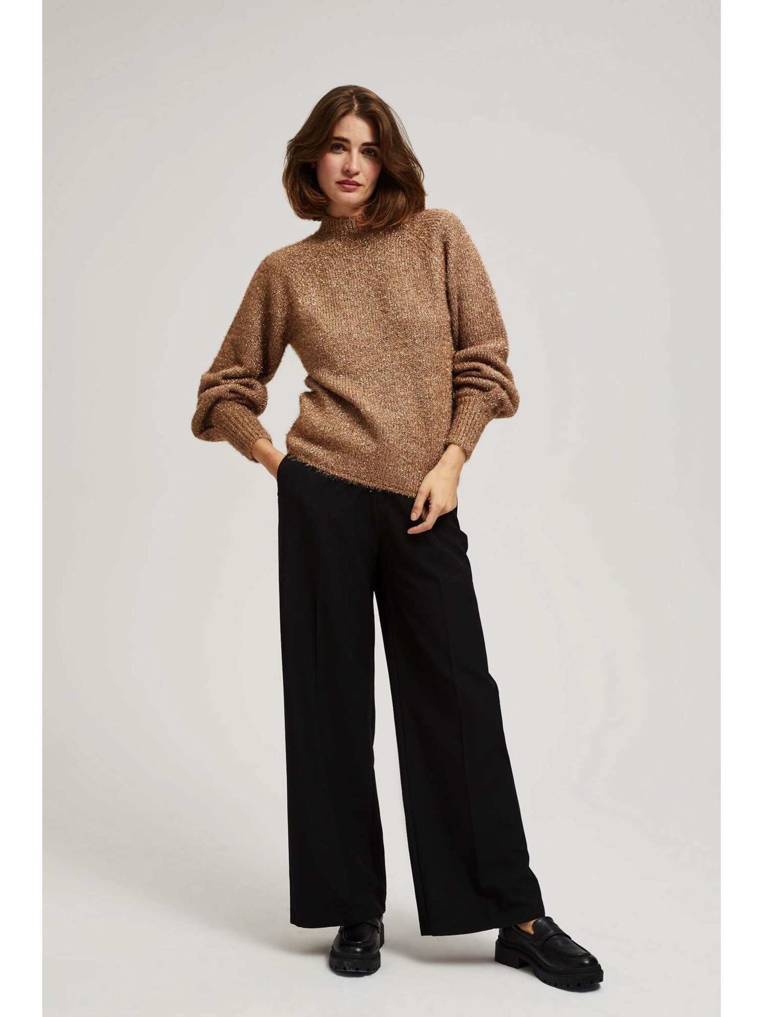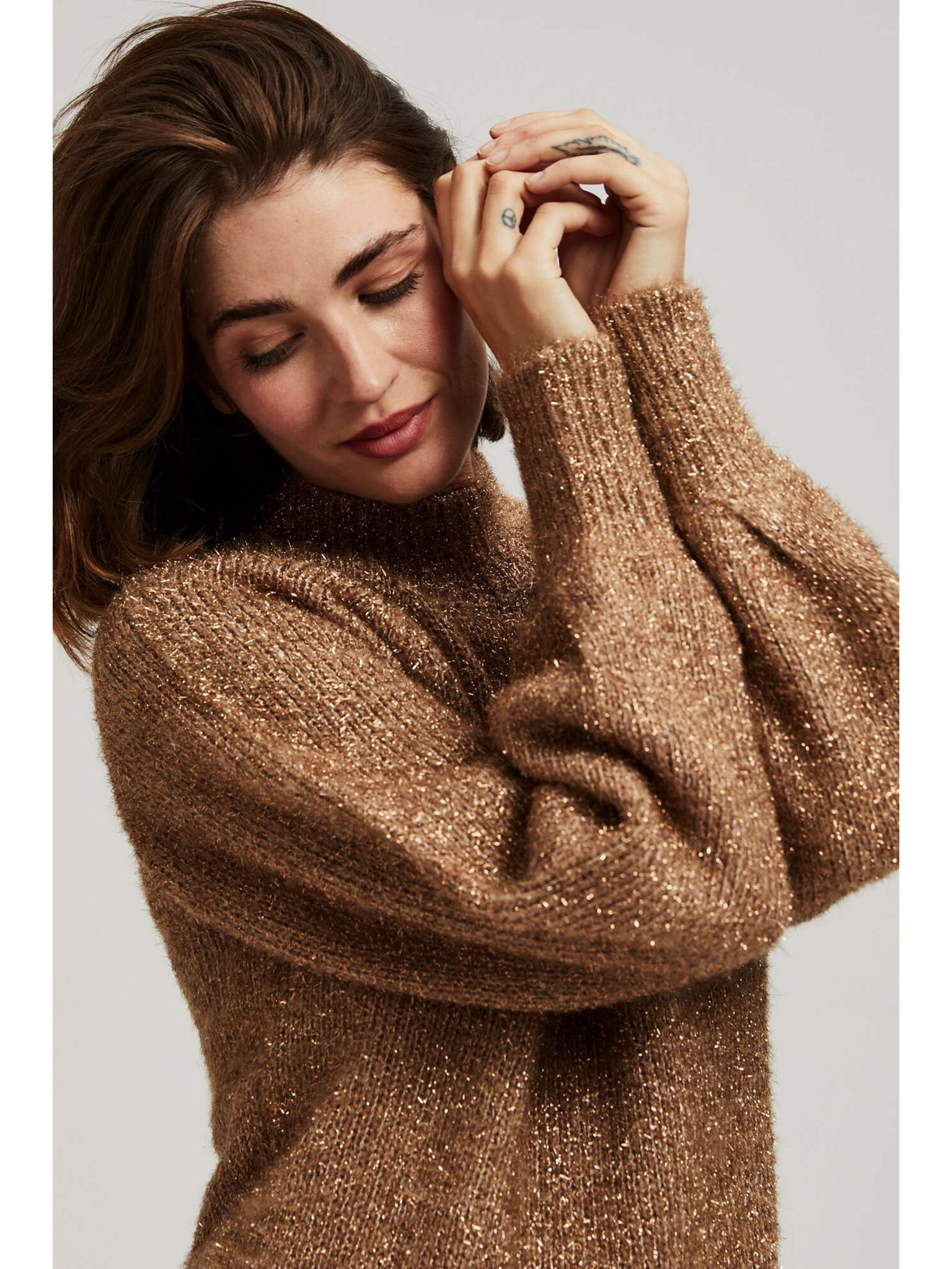 Суитшърт с висока яка, декориран с метализирана нишка в бежово Moodo