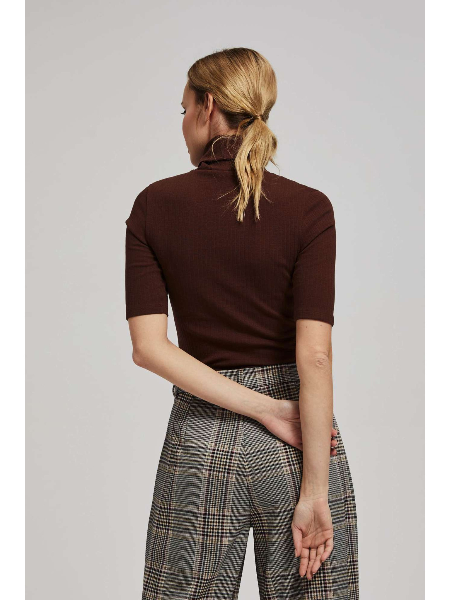 Дамска тениска с джоб Moodo – тъмнокафява