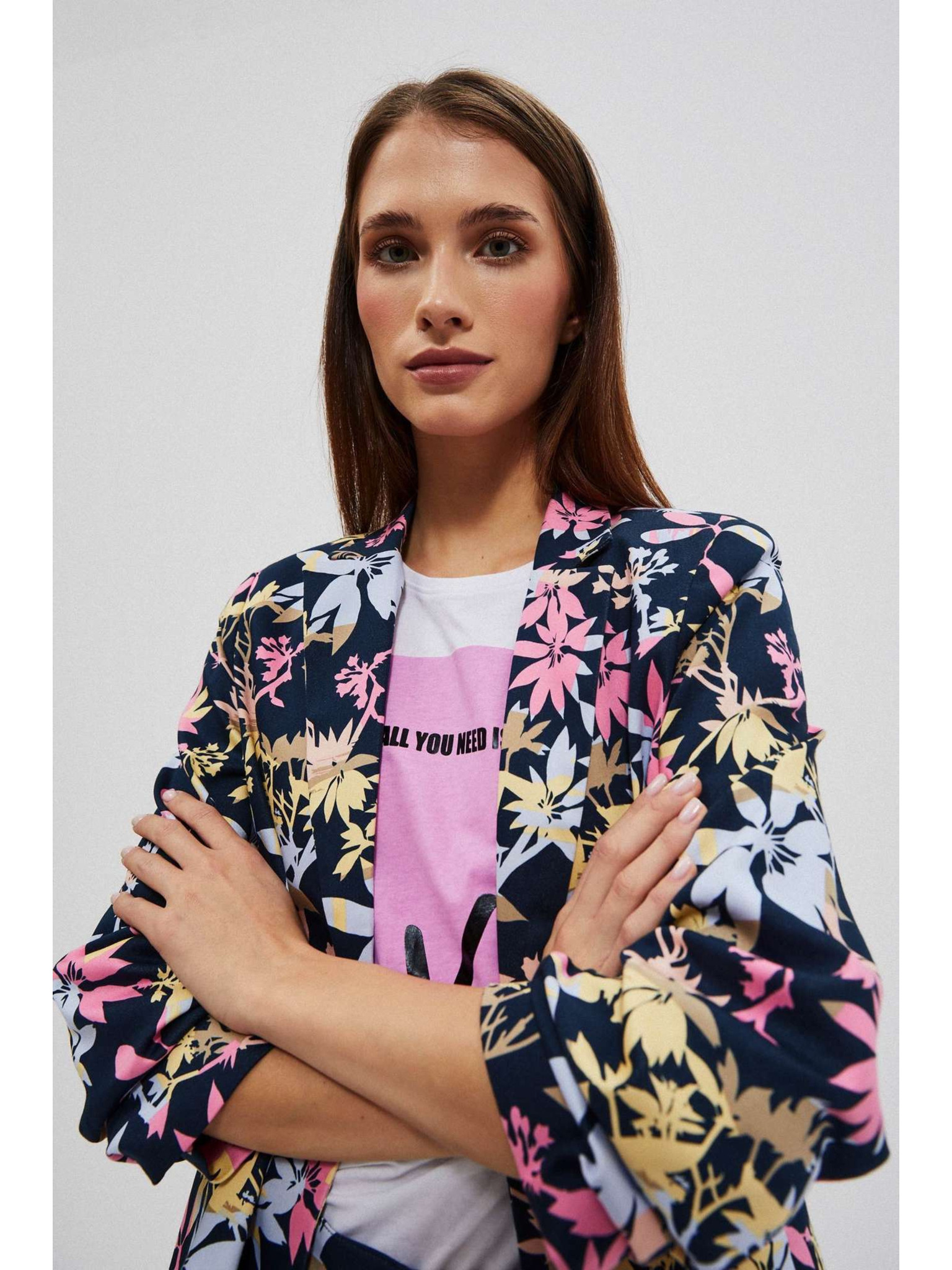 Розово едноредно сако с дълъг ръкав Moodo