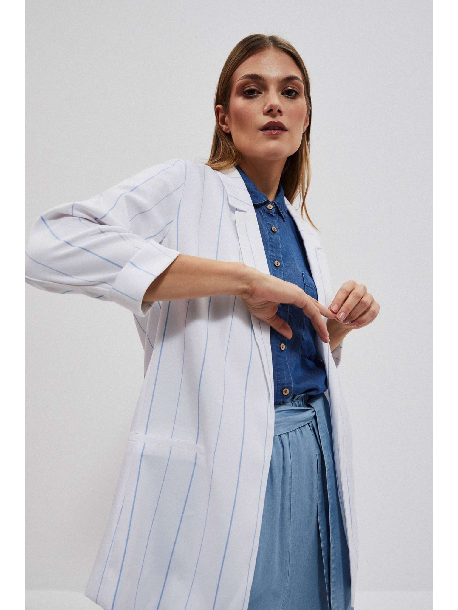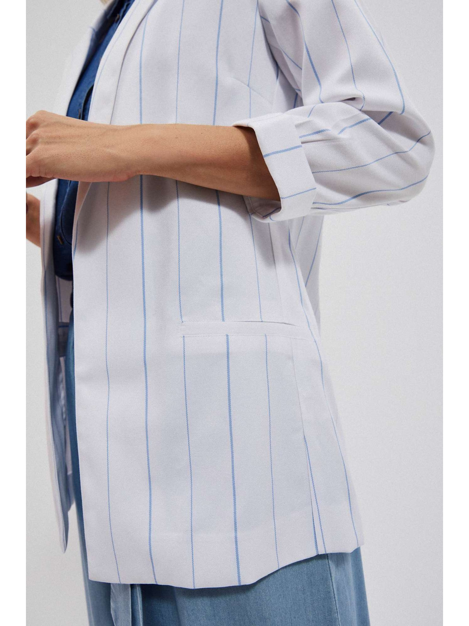 Бяло вискозно сако с ивици Moodo