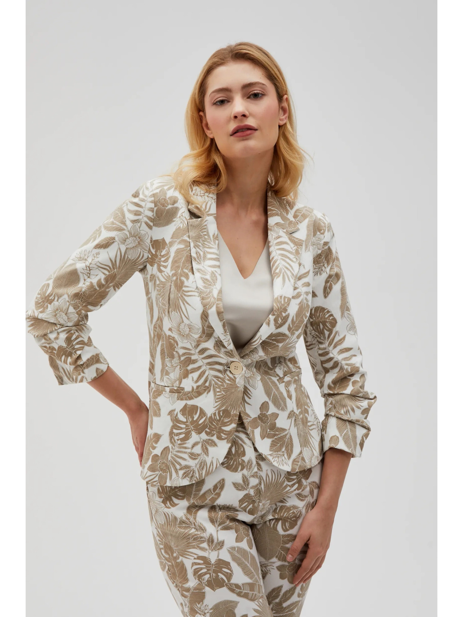 Бяло вискозно сако с ивици Moodo