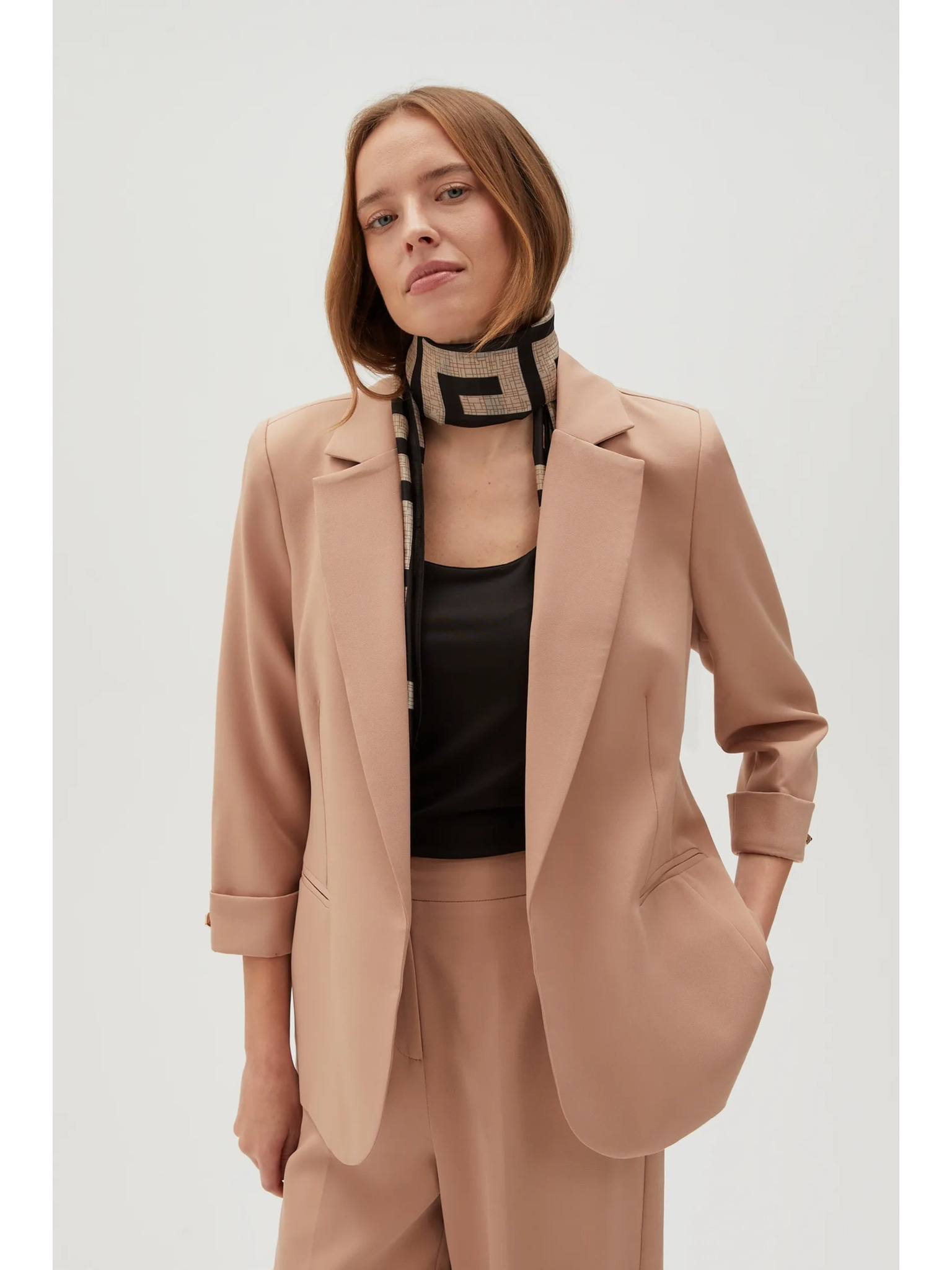Прилепнал кепров блейзер със стеснение в талията Marks & Spencer в кафяво
