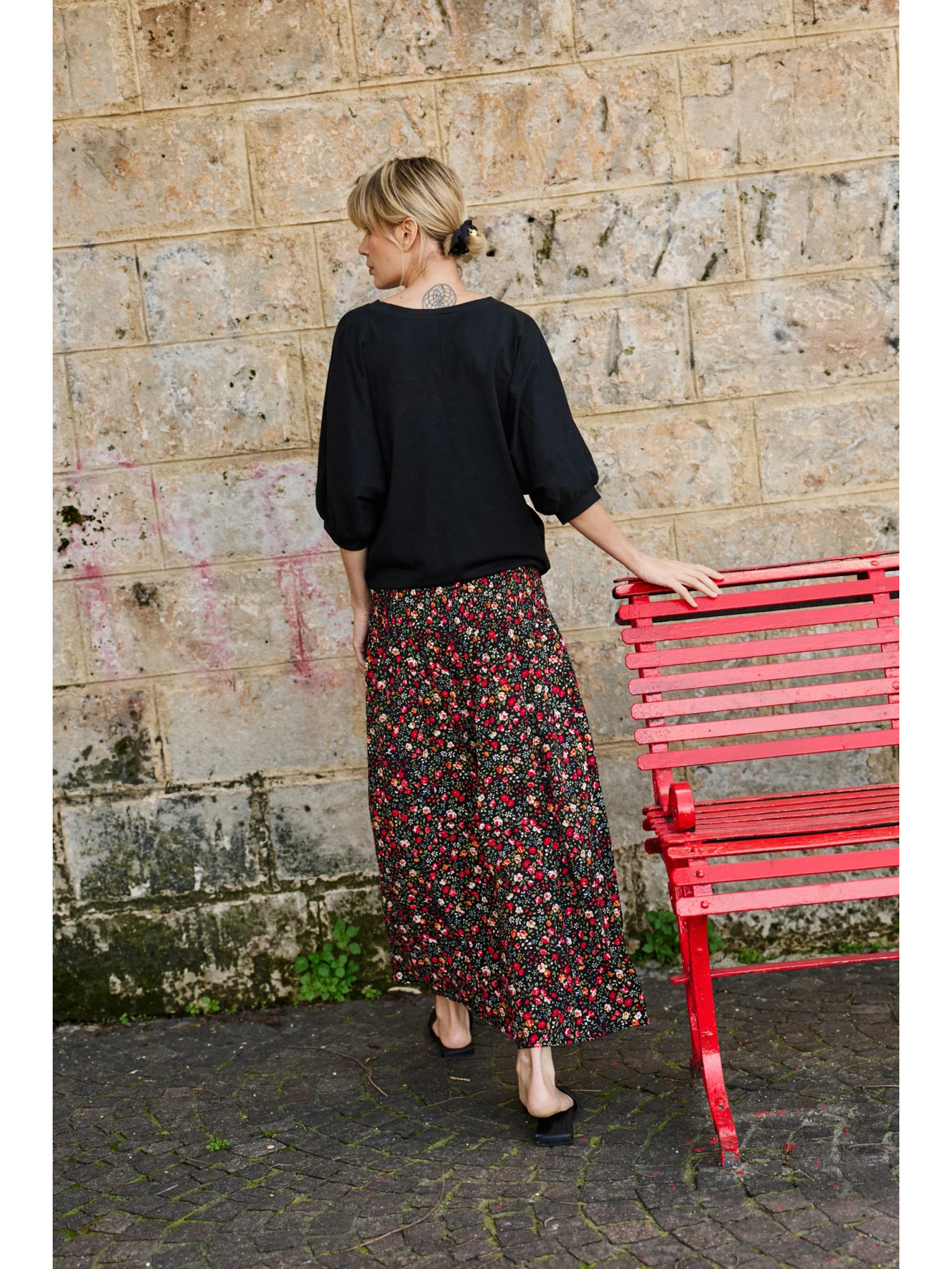 Миди пола с цветен десен черна Moodo