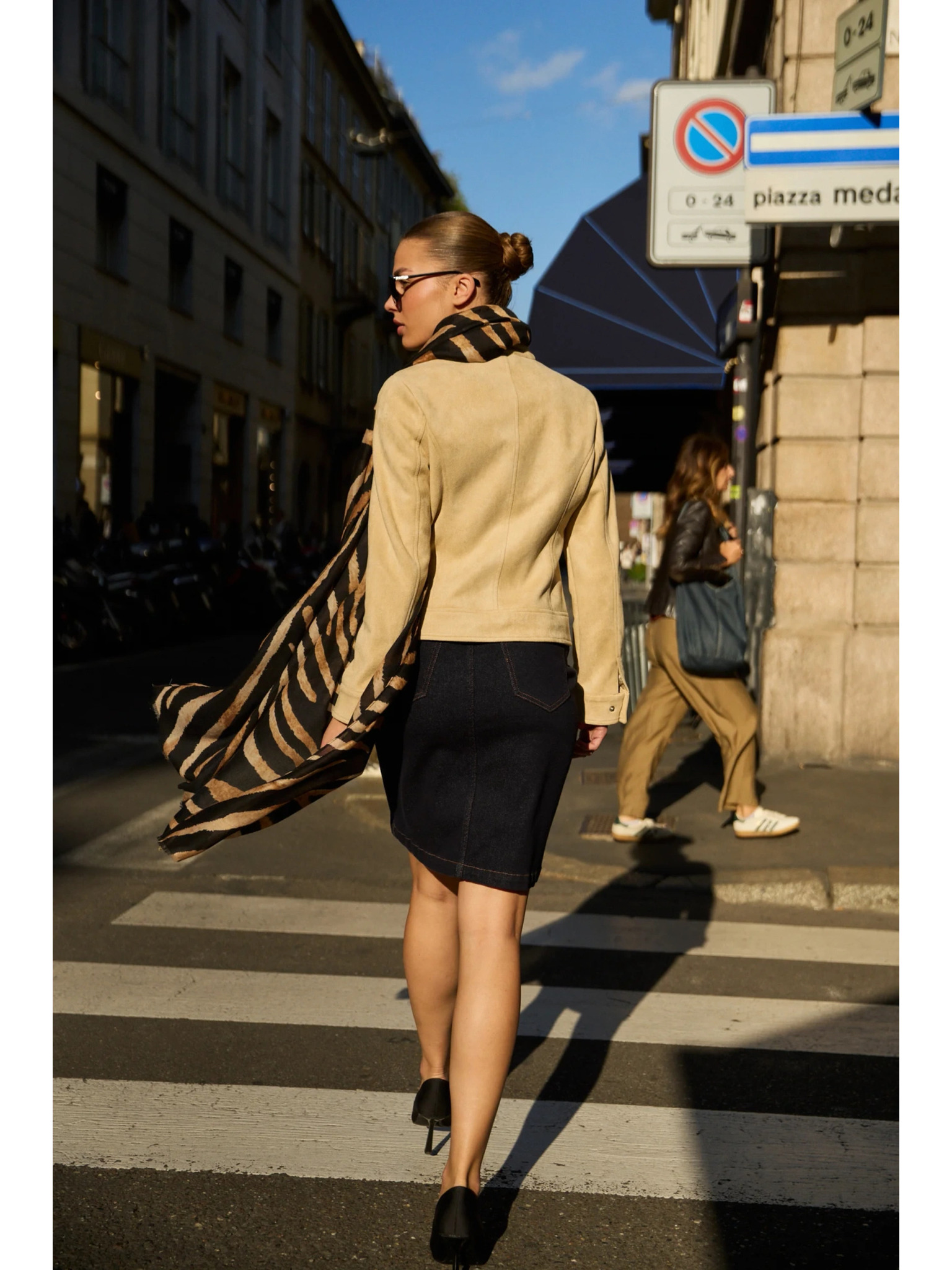 Дънкова пола тъмно синя Moodo