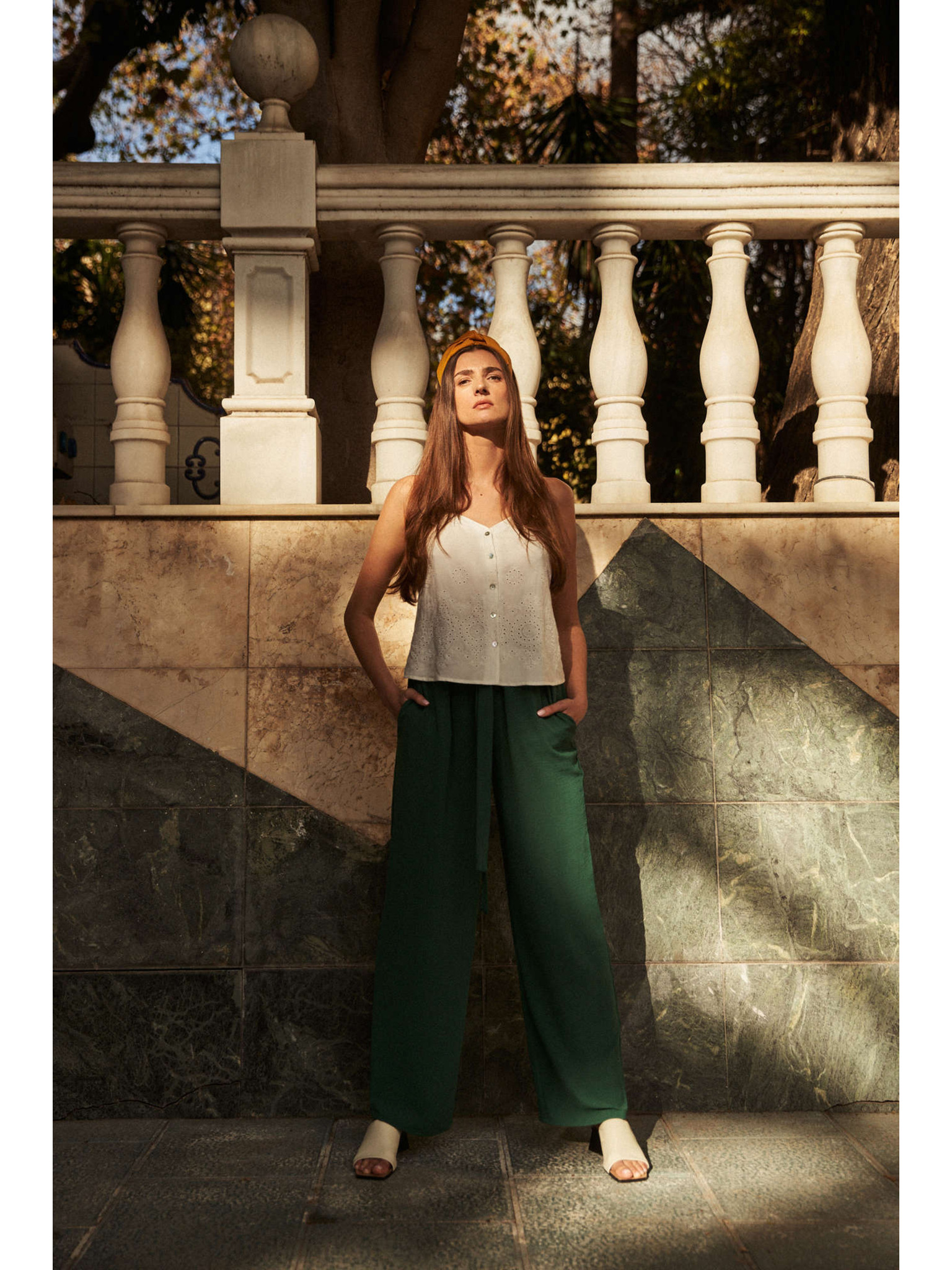 Светлозелен дамски панталон с широк крачол Tom Tailor
