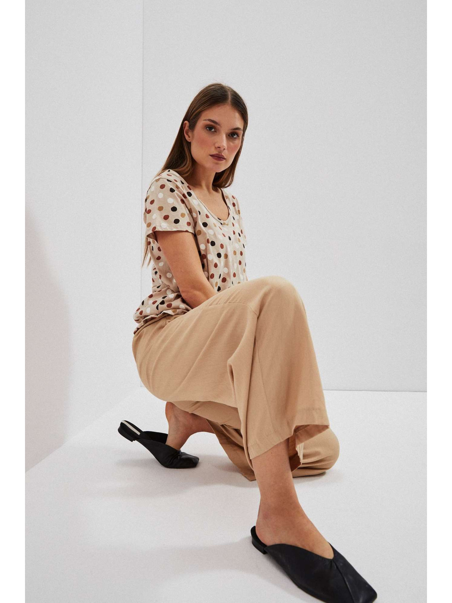 Бежов дамски широк панталон ORSAY