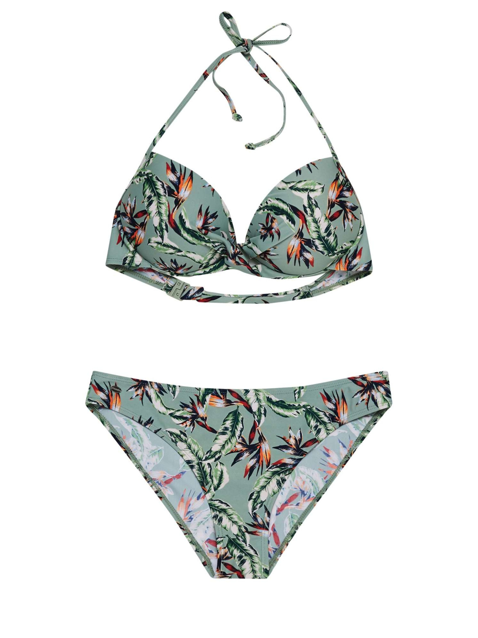 Триъгълна горна част на бански с принт и набиране Marks & Spencer зелена