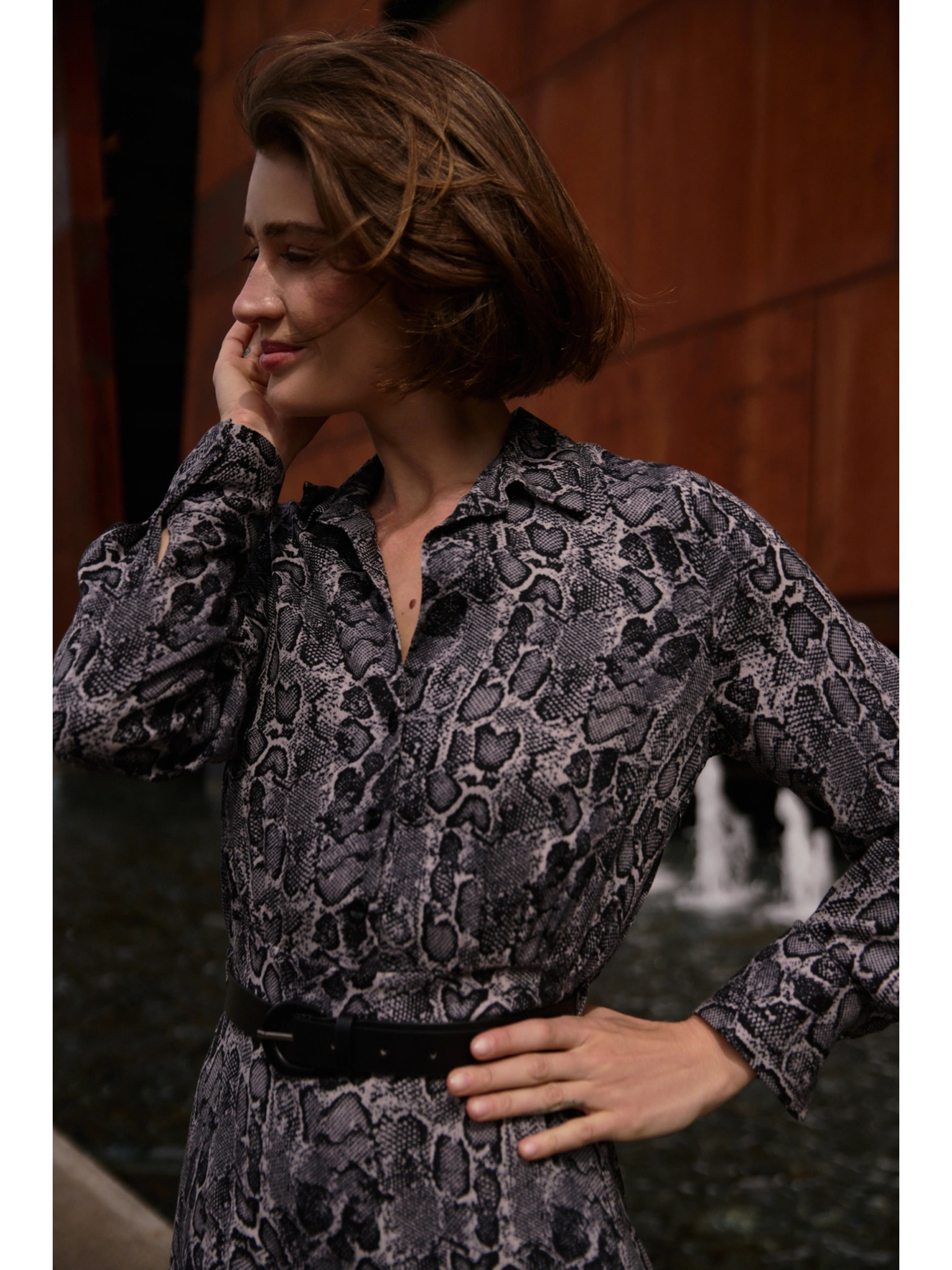 • размери на модела: Модел на снимката: височина - 177.5см, размери 84/64/91, размер на снимката - горна част-S, долна част-S