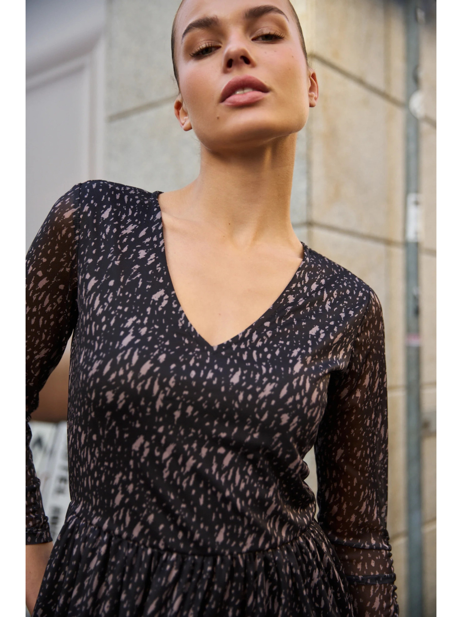 LORETTA уникални дълги рокли с тюлени ръкави и деколте - черно